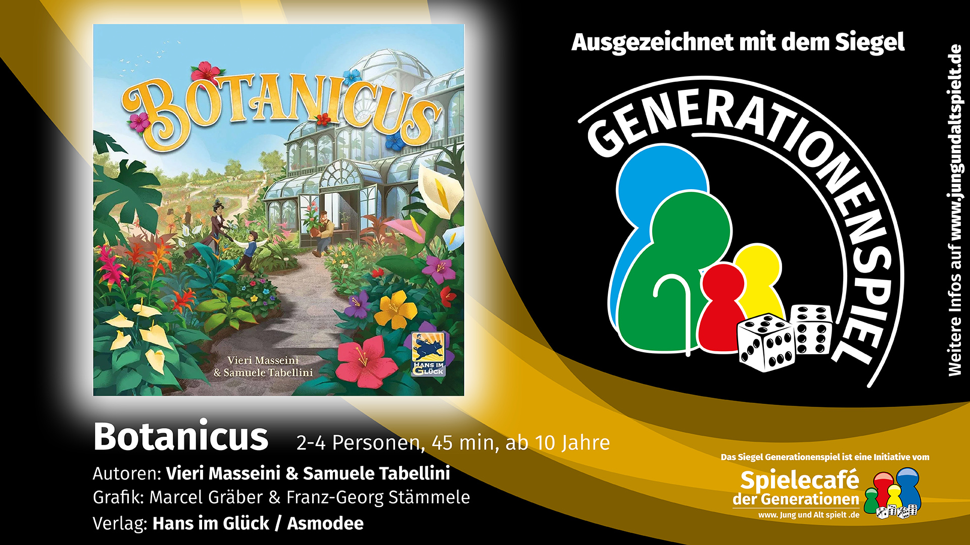 Botanicus von Vieri Masseini und Samuel Ferrari | Hans im Glück Verlag erhält das Generationenspiel-Siegel