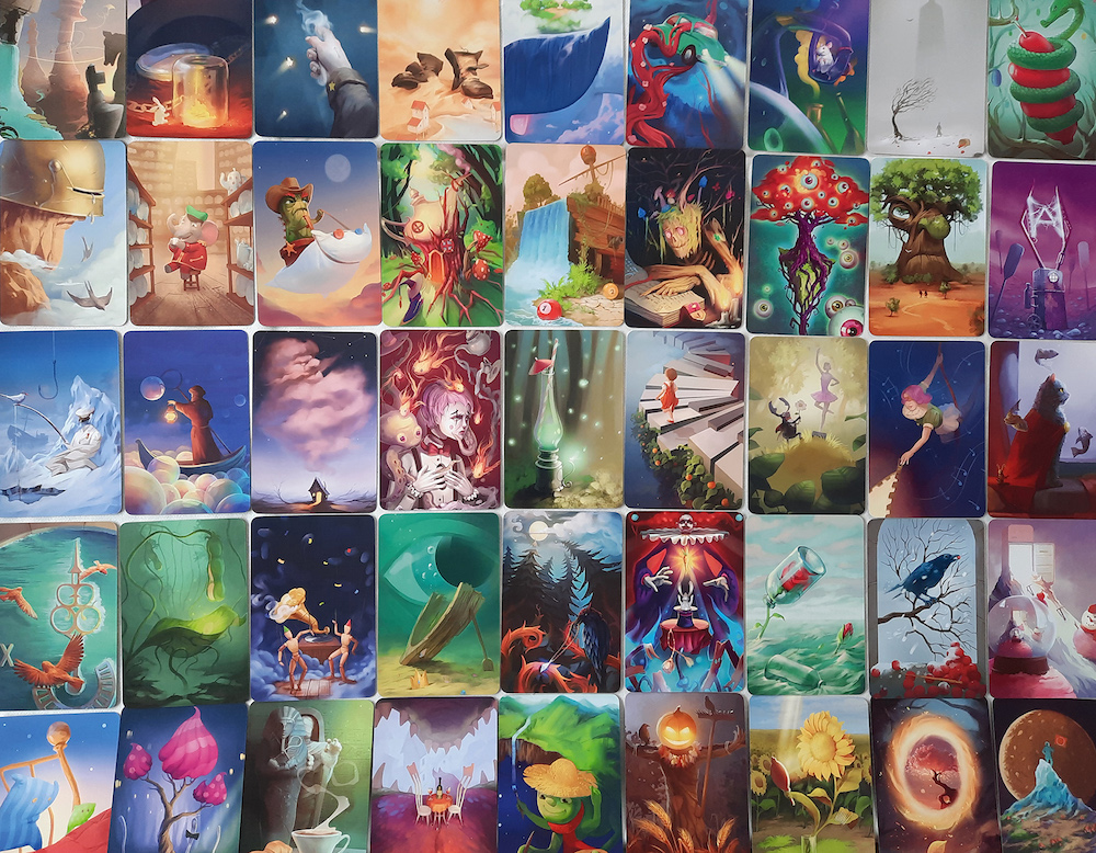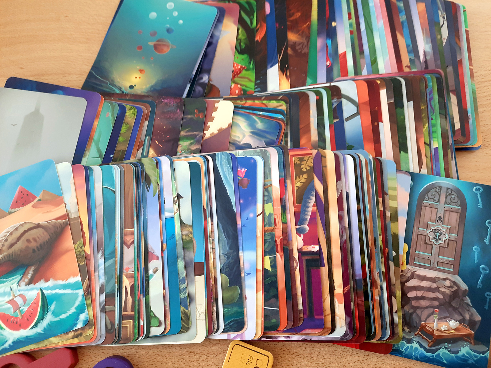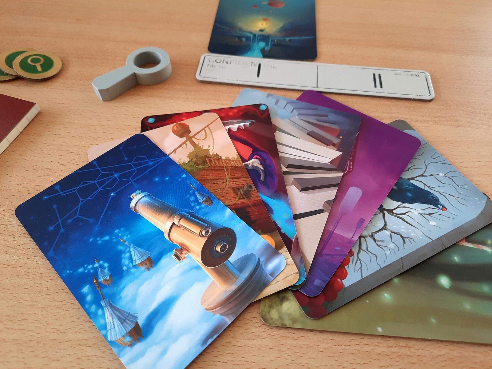 Die Grafiken des Materials wurden ansprechend gestaltet. Die Karten zeigen wundervolle Bilder, welche die Fantasie anregen. Dass nicht alle Details auf den Karten immer gleich erkannt werden, trägt hier in besonderer Weise zum Spielcharakter und Spielespaß bei: Es gibt immer wieder etwas Neues zu entdecken und somit findet man immer wieder Hinweise auf den Karten, mit denen sich „herausgeredet“ werden kann. Da dies zum Spielprinzip gehört, ist dies sehr förderlich.