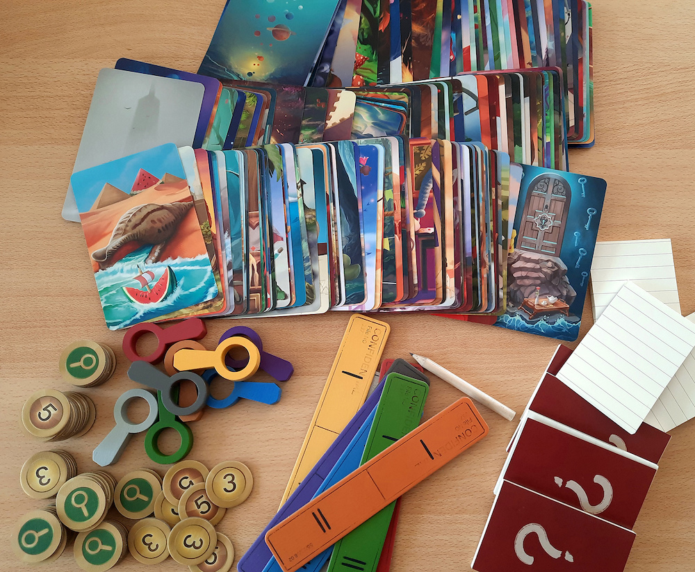 Das Material von Detective Club kann als vorbildlich für das Generationenspiel-Siegel bezeichnet werden. Die beiliegenden Lupen und Auslagen sind groß und stabil. Dabei besticht das Material durch eine sehr ansprechende Haptik. Auch die Karten sind hochwertig produziert. Auf- und Abbau des Spiels werden durch eine Sortiereinlage für das Material in der Spieleschachtel ideal unterstützt.