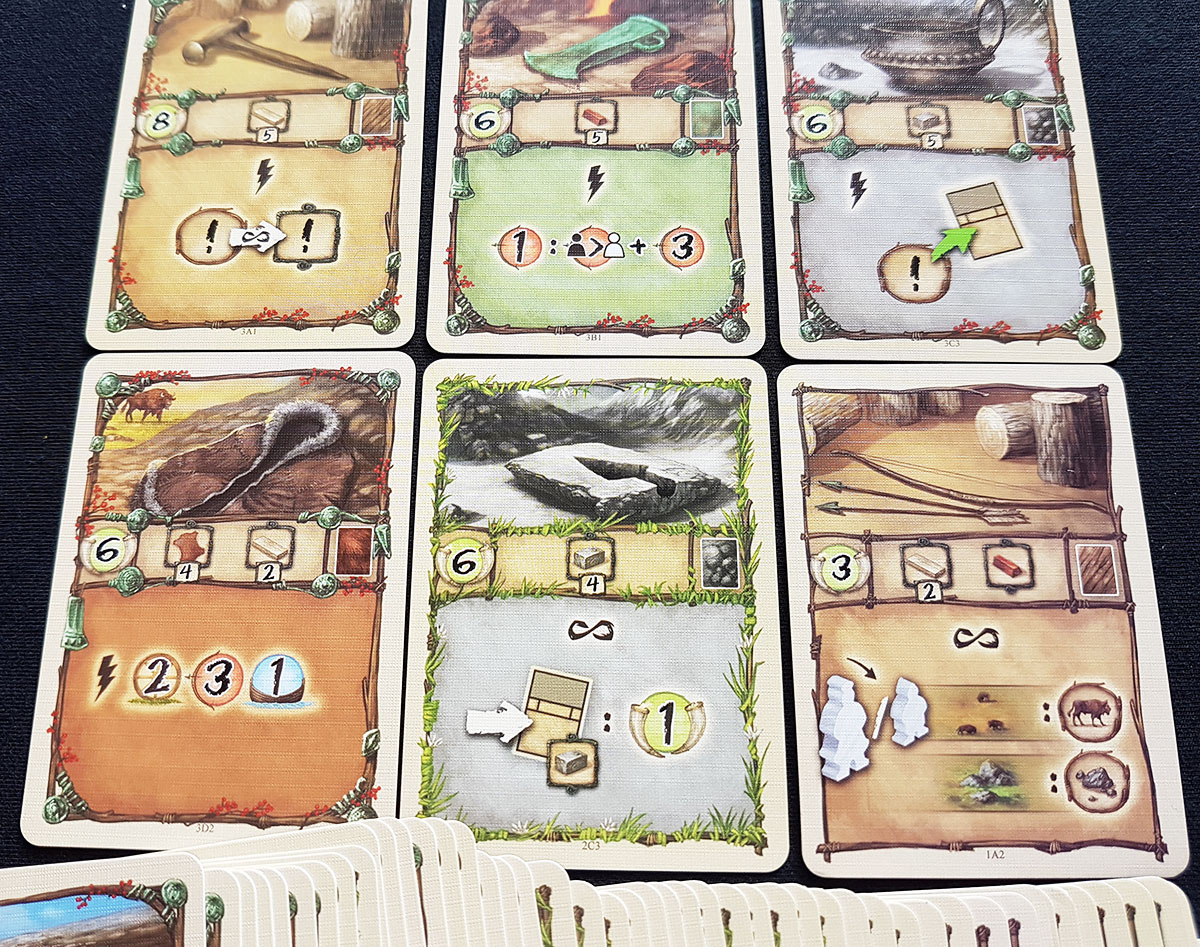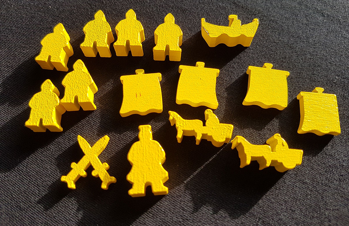 Und was machen unsere Kundschafter so den ganzen Tag? Zum einen generieren sie Rohstoffe, oder verarbeiten sie, oder wandeln sie in Siegpunkte um. Das kennt man ja zur Genüge. Aktionsfelder zum Verbessern der eigenen Fähigkeiten sind auch üblich. Artefakte bauen, die einem Vorteile bringen – bekannt. Auf Raubzug gehen und die lieben Mitspieler ausplündern – fies aber nichts Neues. Seine Marktkarren weiter vorrücken – auch klar.
