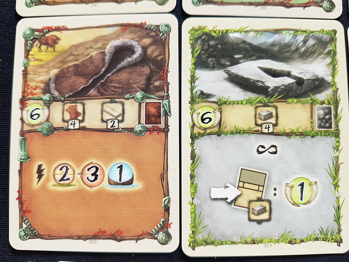 So werden nach jeder Runde jeweils zwei Geländeplättchen umgedreht und präsentieren ganz andere Aktionsfelder. Jetzt meist Möglichkeiten, am Spielende Punkte zu generieren. Auch der Fortschritt auf dem Fluss ist wichtig, denn dadurch werden mehr Artefakte freigeschaltet. Die Verzahnung der einzelnen Möglichkeiten ist fein ausbalanciert, eröffnet viele Kombinationen und es bieten sich von Zug zu Zug mehr Gelegenheiten. Alles elegant zugeschliffen ohne viele Ecken oder Kanten. Es spielt sich sehr klar, keine tückischen Kleinigkeiten, die den Spielfluss stören.