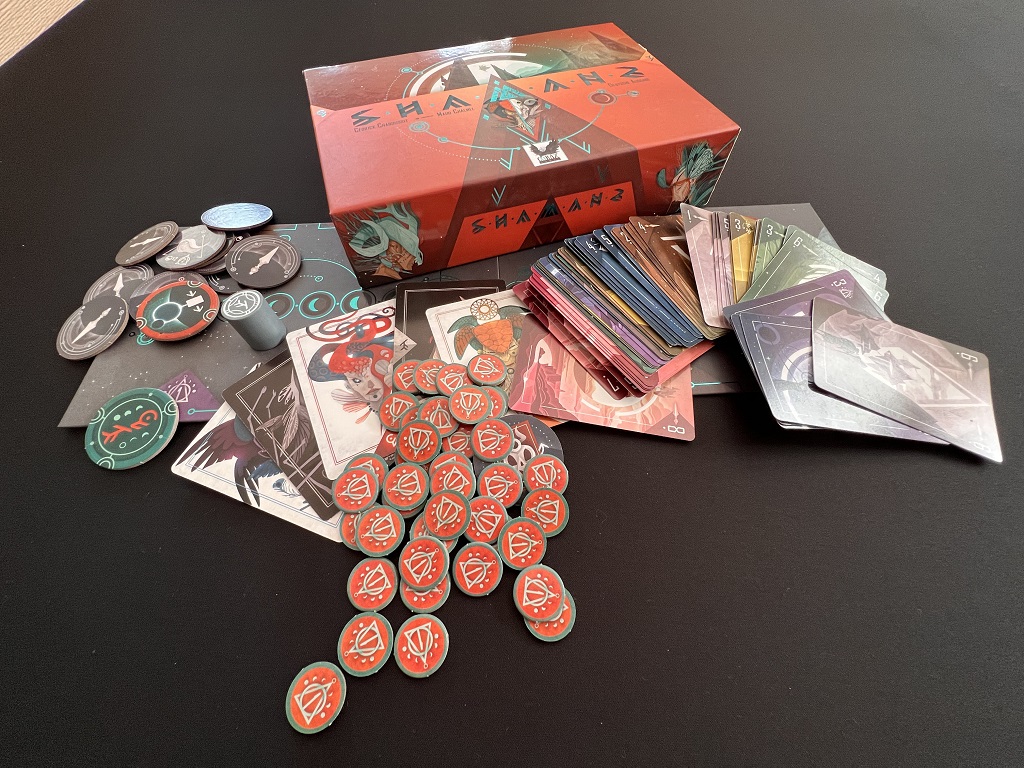 Du bist ein Schamane erklärt uns die Anleitung. Dass dies nicht zwingend der Fall sein muss, um das Spiel gewinnen zu können, werden wir in den nächsten Runden herausfinden. Je nach Teilnehmendenzahl stehen sich bis zu drei Schamanen und zwei Schatten gegenüber. Wer zu welcher Gruppe gehört ist aber natürlich nicht bekannt, denn beide verfolgen unterschiedliche Ziele.