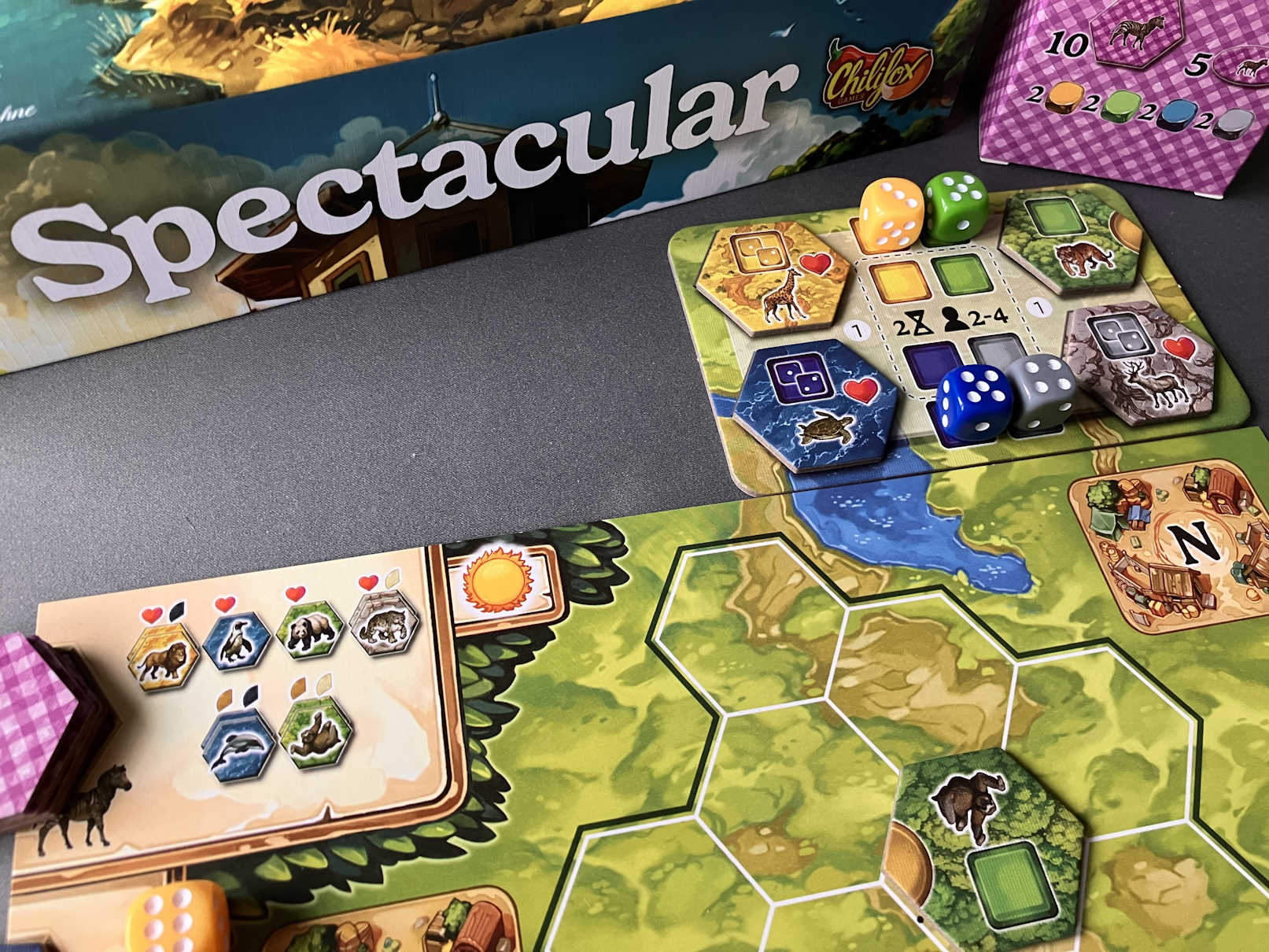 „Spectacular“ ist für mich eines dieser Spiele, die ganz plötzlich einfach da sind und völlig egal ob aus Liebe auf den ersten oder den zweiten Blick nicht mehr gehen sollen. Dabei sorgt es für eine angenehme Atmosphäre am Tisch und entlässt mich mit einem friedlichen Gefühl aus einer Partie. Es fordert mich nicht direkt zu einer zweiten auf und trotzdem möchte ich verweilen und mehr entdecken und ausprobieren, einfach von mir aus!