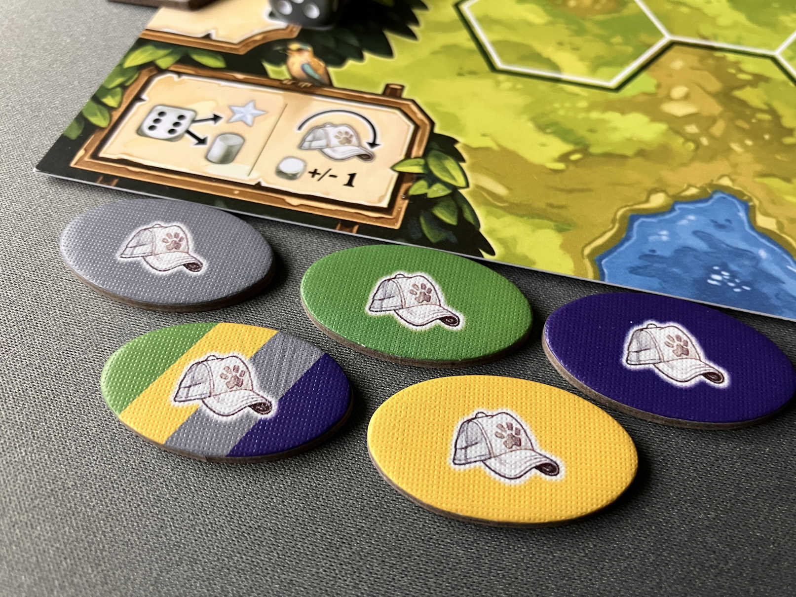 - Wertung der Tiervielfalt – egal ob mit einem Würfel besetzt oder nicht, zählt die Vielfalt der verschiedenen Tiere auf den Plättchen gemäß der Tabelle am Unterrand des Spielertableaus