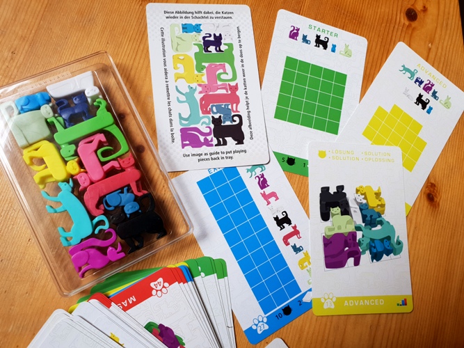 Die Katzenfiguren sind auf jeden Fall sehr stabil und wir finden die Idee richtig gut. Man kann Katzen teils sehr geschickt ineinander schieben und das ist auch nötig, um die Aufgaben zu lösen.