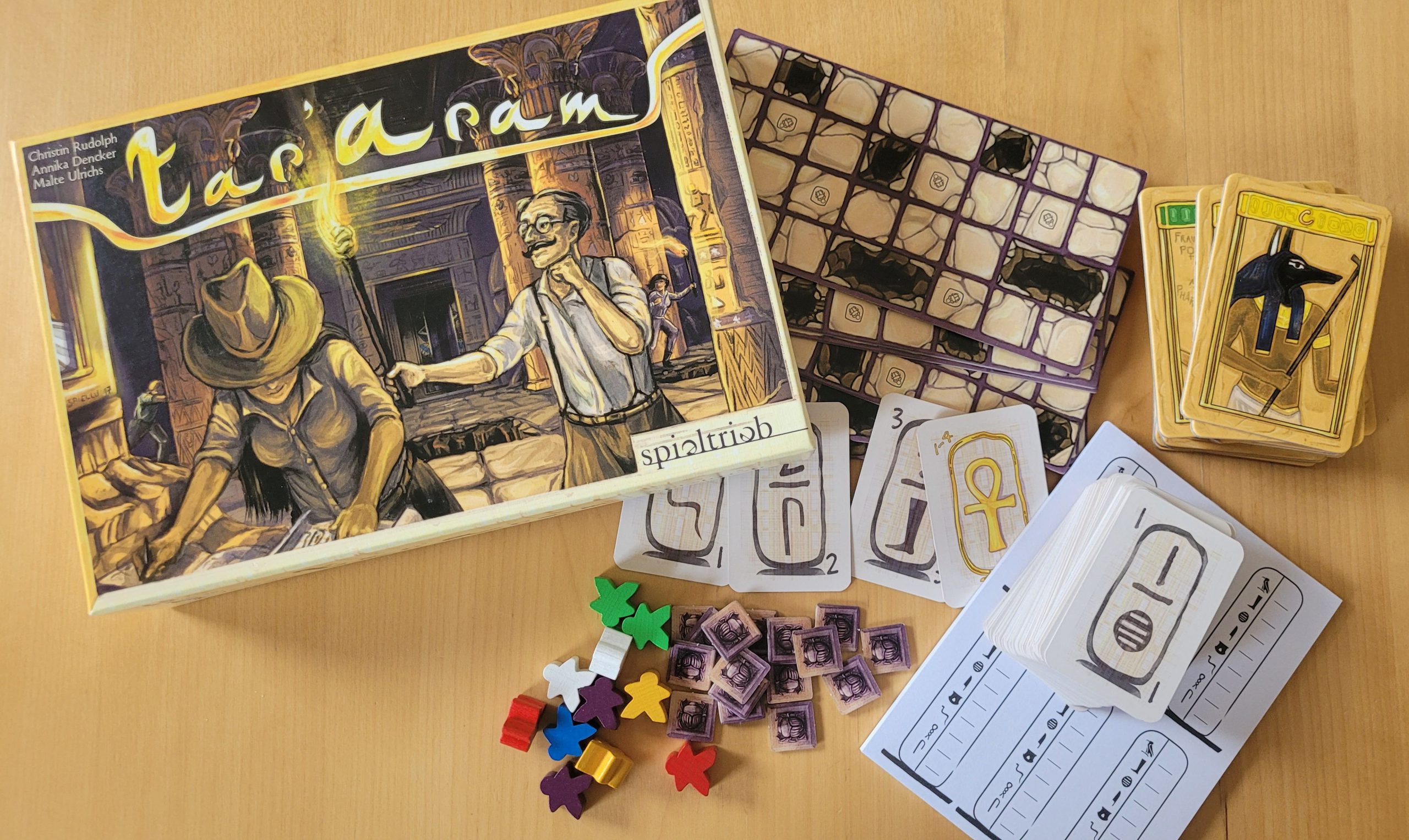 Tar’Aram ist ein Wettlauf- und Deduktionsspiel von Annika Dencker & Christin Rudolph und bei Spieltrieb erschienen. Es ist für 2-6 Spielende geeignet und kann ab 10 Jahren gespielt werden.
