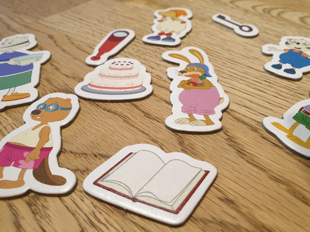 Die Grafik ist im Comic-Zeichen-Stil gehalten, ganz nach den Büchern – nur leider etwas blass geraten. Die Farben hätten hier ruhig kräftiger sein können. Wunderbar ist mal wieder die hohe Qualität des Spielmaterials. Alles wurde extra dick/stabil produziert und das ist natürlich ideal für Kinder jeden Alters.
