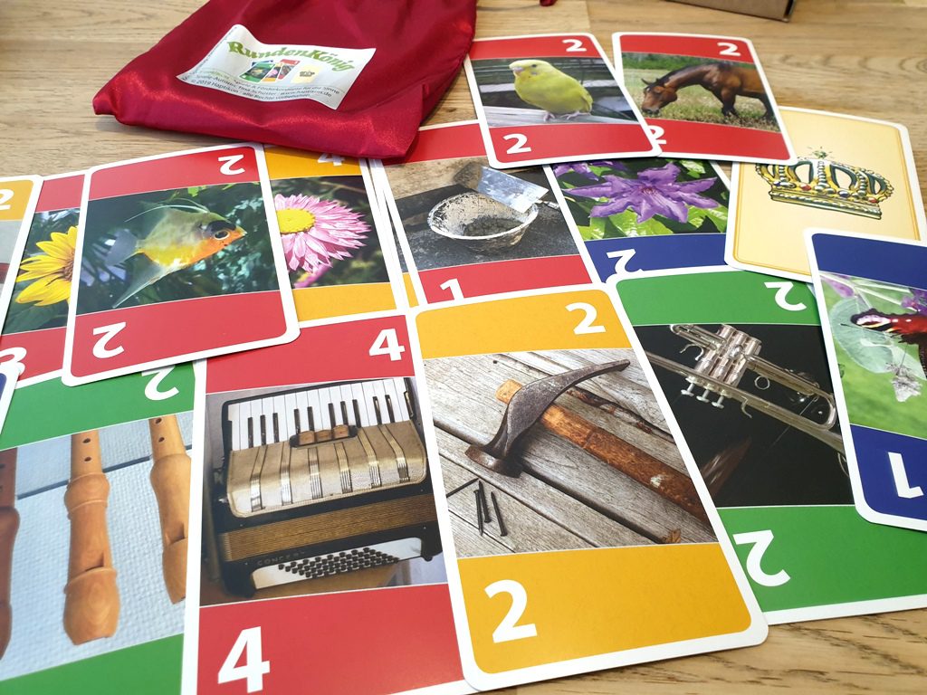 Der Rundenkönig ist ein Aktivierungsspiel, das wir gerne bei unseren Spieleangeboten in Pflegeheimen einsetzten. Aufgrund der Verwandtschaft mit Uno – in vereinfachter Form – kommen viele der SeniorInnen schnell mit dem Spielablauf zurecht. Die Punktevergabe am Ende einer Runde haben wir jedoch bei allen Spielrunden mit demenziell erkrankten Menschen weggelassen, da sie das schnell überfordert. Das ist aber das schöne am Konzept der Haptikon-Spiele: Sie können beliebig an die Bedürfnisse der MitspielerInnen angepasst werden. Erscheint eine Regel zu komplex, wird sie weggelassen. Dies sehen wir als elementar an, um Mitspielende nicht zu überfordern und somit Spielespaß zu garantieren.