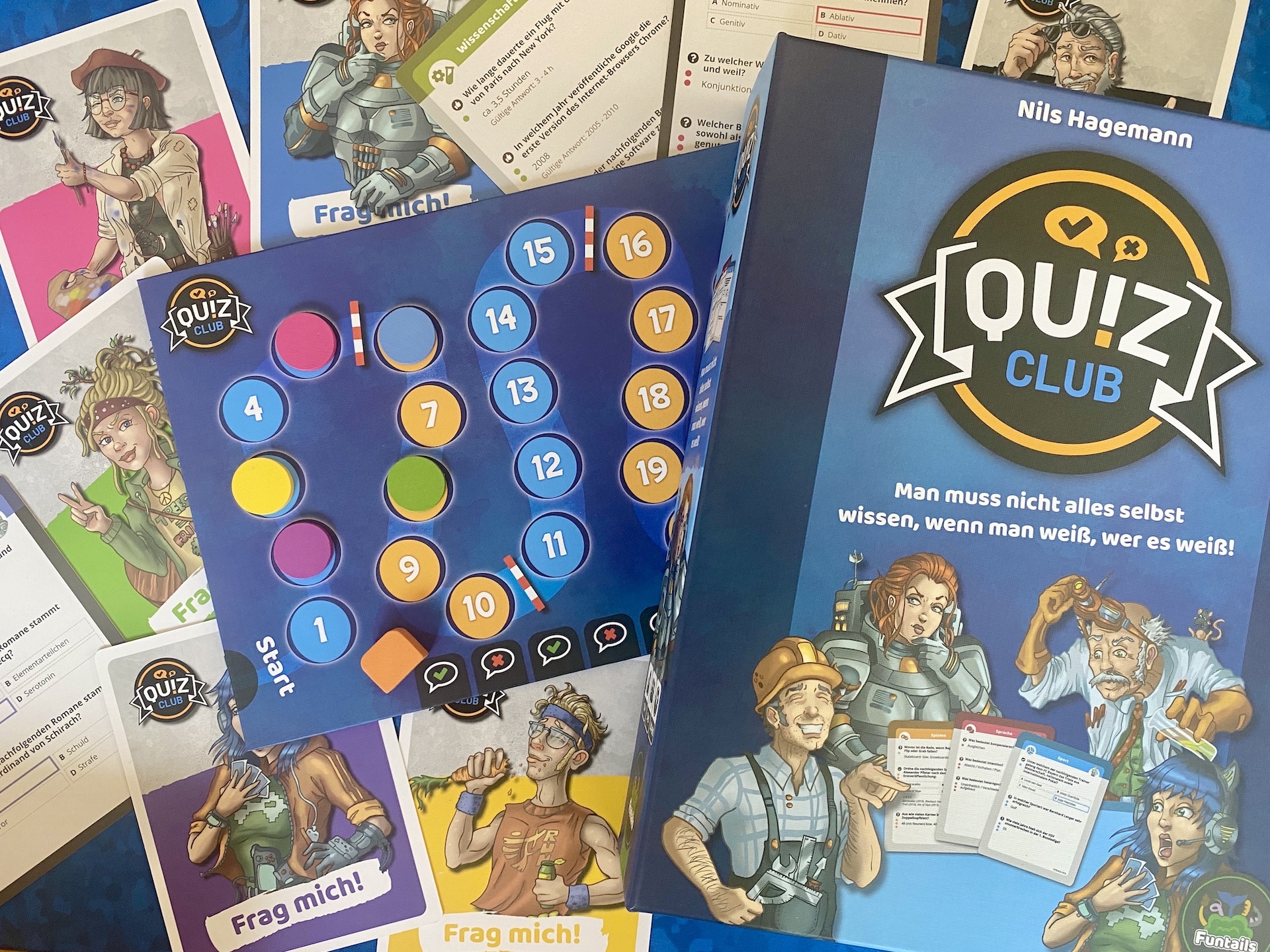Quiz Club ist ein Wissensspiel von Nils Hagemann und bei Funtails erschienen. Es ist für 3-8 Spielende geeignet und kann ab 12 Jahren gespielt werden.