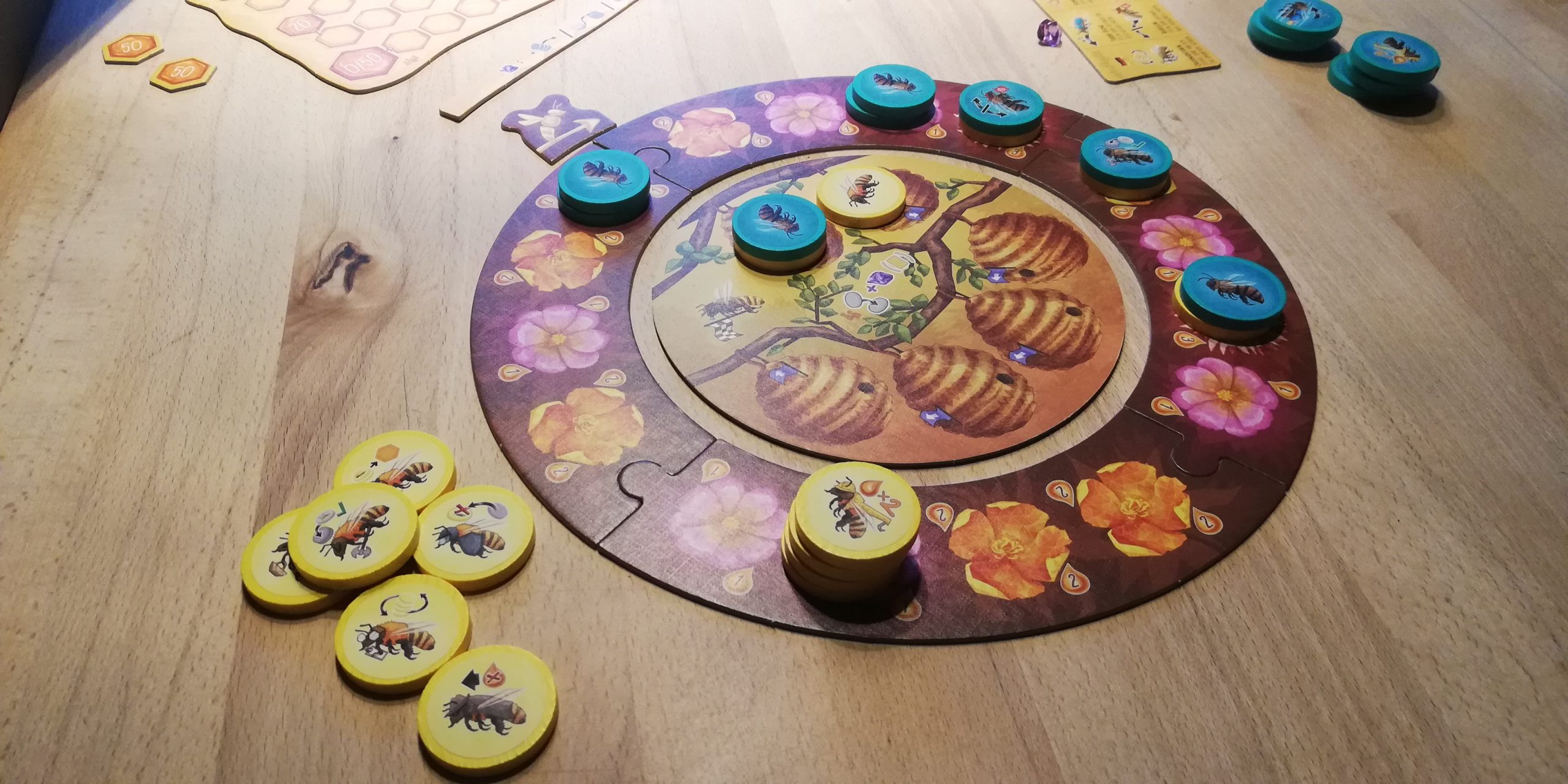 Am Ende gewinnt der Bienenschwarm, der die meisten Nektartropfen sammeln konnte. In bis zu sieben Wertungen muss jeder seine Bienen zum richtigen Zeitpunkt auf den schönsten Blüten platzieren.