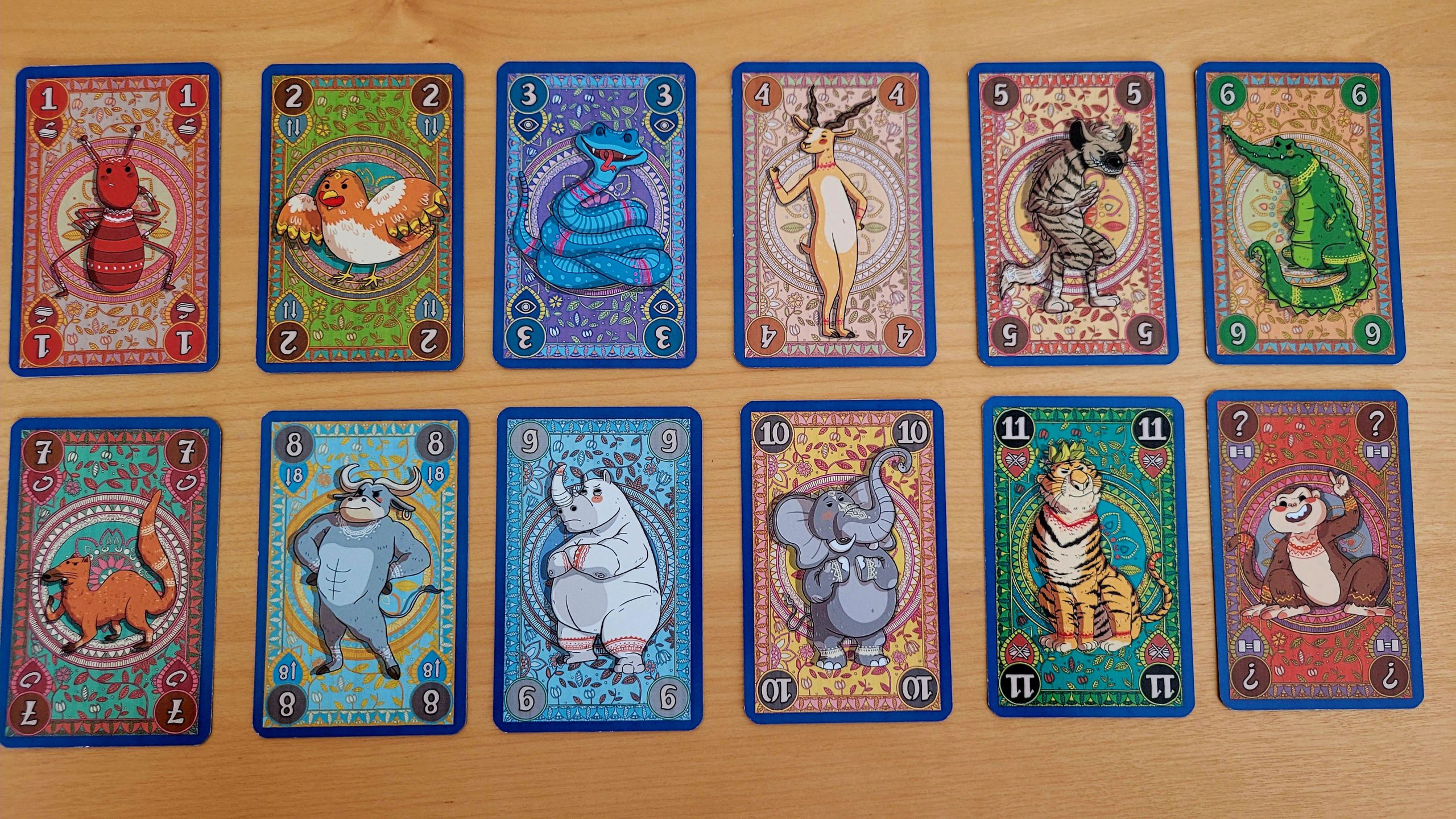Wir spielen reihum im Uhrzeigersinn. Bin ich an der Reihe, muss ich immer eine gültige Karte ausspielen. Das heißt, meine Tierkarte muss gleich oder höher dem Wert der bereits gelegten Karte sein. Trifft dies nicht zu, dann gilt meine Karte als ungültig und ich muss den kompletten Abwurfstapel auf die Hand nehmen. Wenn sich gleiche Karten auf meiner Hand befinden, darf ich auch mehrere Karten einer Art auf einmal abwerfen.