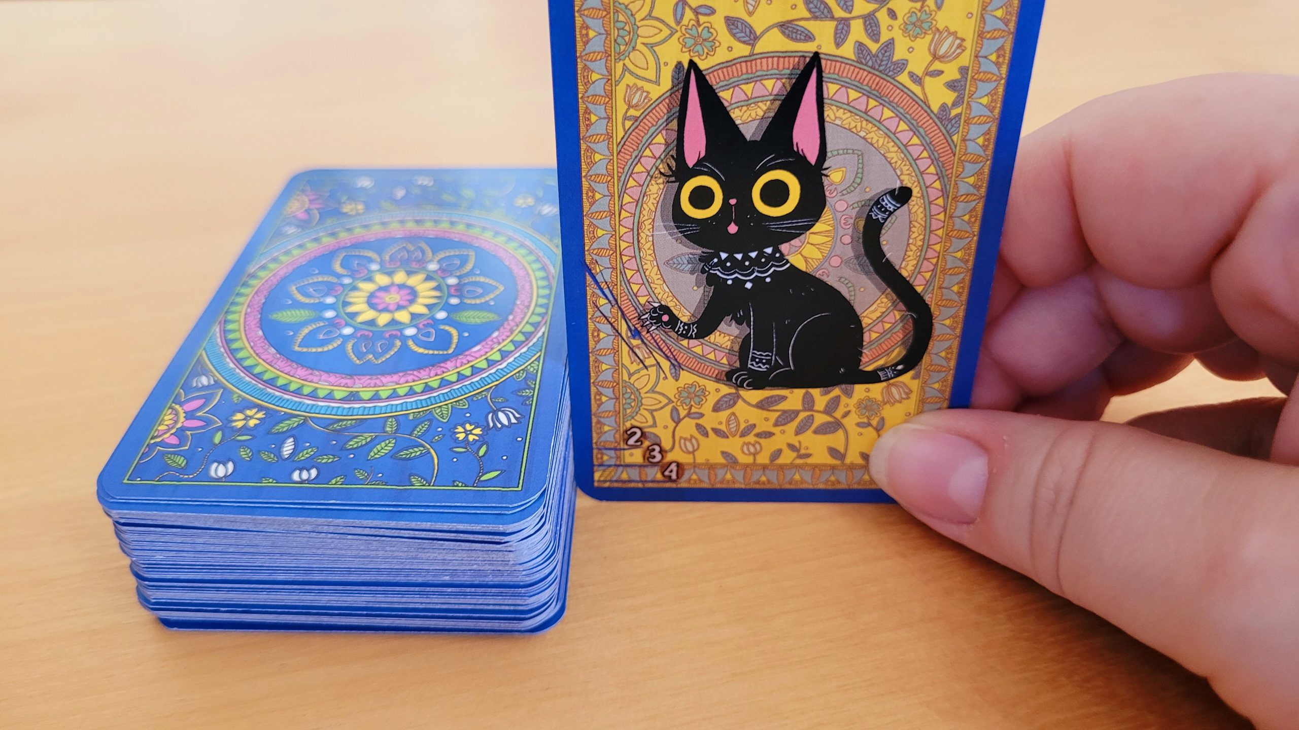 Diese Effekte können zum Beispiel sein, eine Handkarte mit einer Tischkarte zu tauschen, bei einem Mitspielenden zu spionieren, einen Effekt zu kopieren oder eine weitere Karte zu spielen. Bevor es nun richtig losgeht, wird die Böse-Mieze-Karte entsprechend der Spieleranzahl in den Nachziehstapel gemischt. Taucht diese Karte während des Spieles auf, so dürfen wir keine Karten mehr nachziehen. Es wird sozusagen die zweite Phase des Spiels eingeläutet.