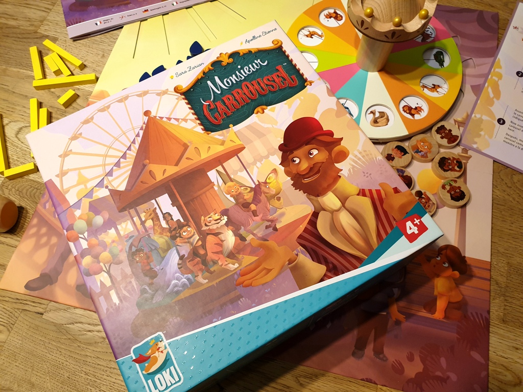 „Monsieur Carrousel“ ist ein kooperatives Kinderspiel von Sara Zarin, das bei LOKI erschienen ist. Es ist ab 4 Jahren geeignet und kann mit 1-6 Personen gespielt werden.