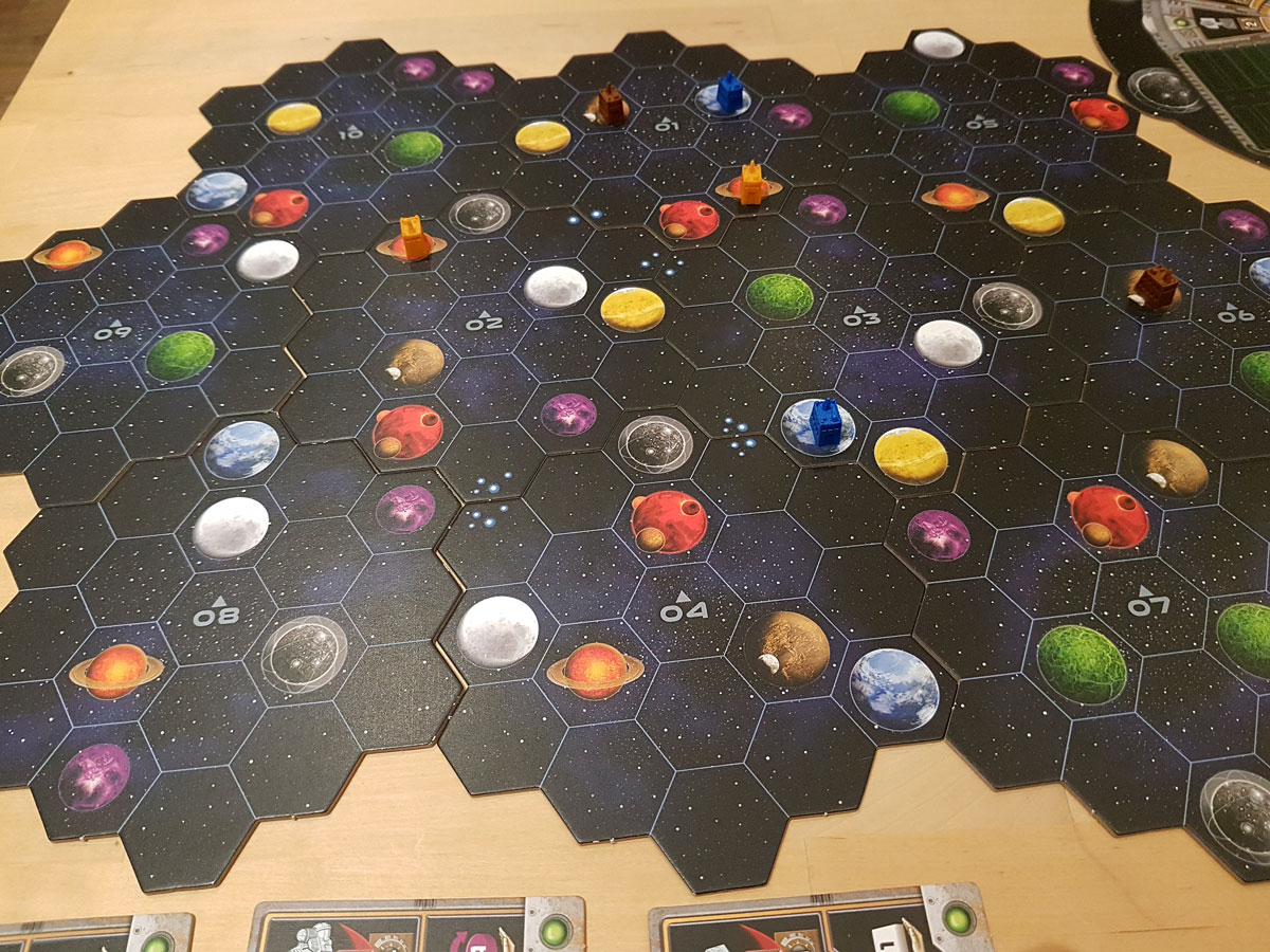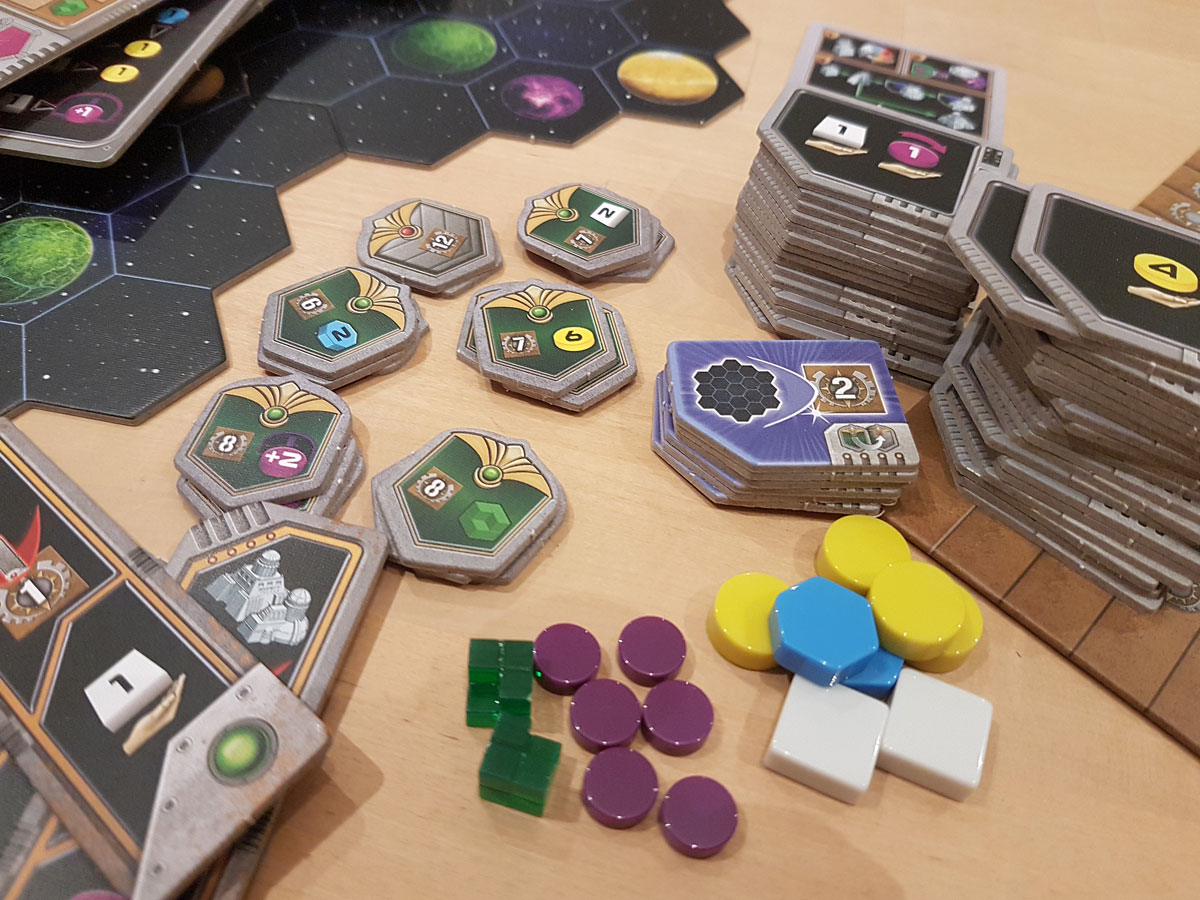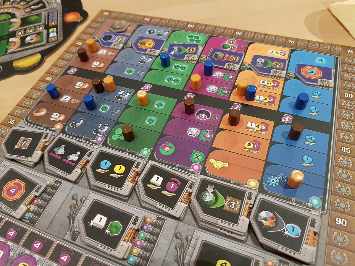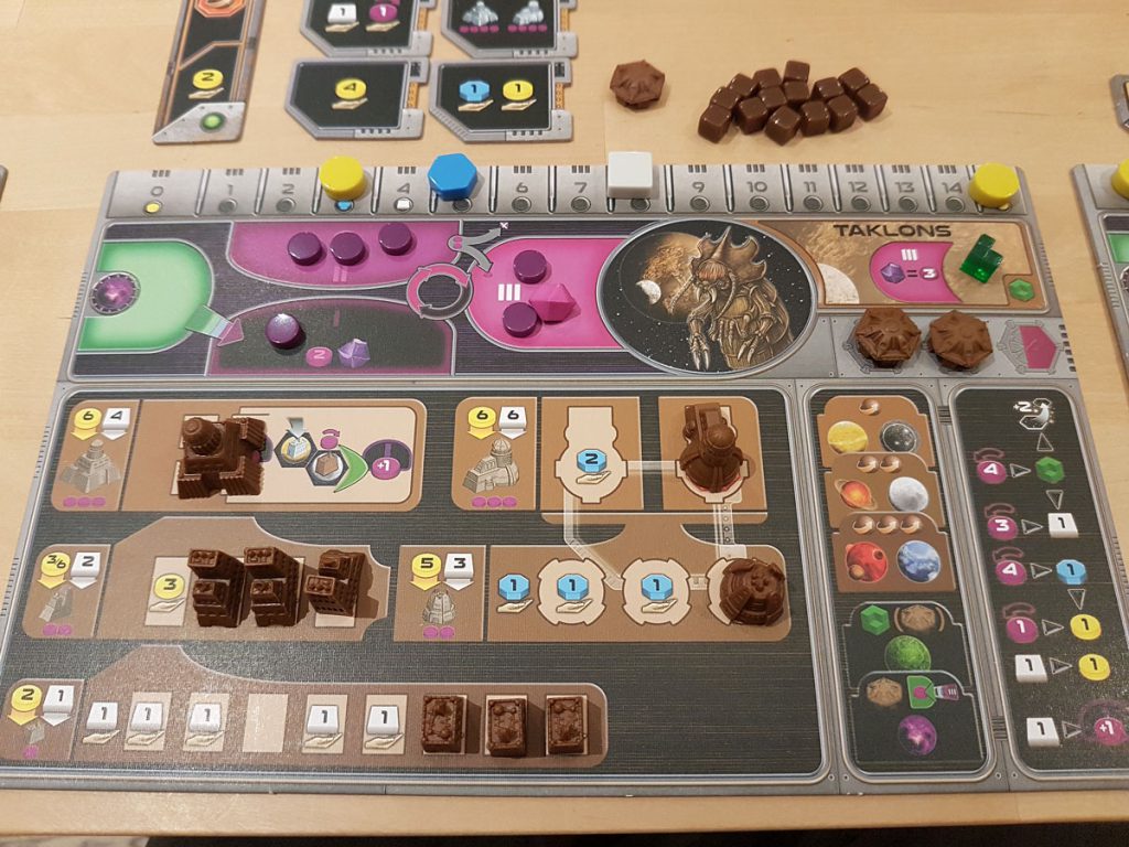 Man besiedelt Planeten, passen sie nicht zum eigenen Volk, werden sie entsprechend terraformt. Man generiert Macht und setzt sie gezielt für spezielle Aktionen ein. Man forscht in sechs Gebieten und sichert sich damit wichtige Vorteile. Man strebt danach, die vorgegebene Rundenziele zu erreichen, um die wichtigen Siegpunkte zu generieren. Man misst sich mit seinen Konkurrenten bei den zufällig bestimmten Spielzielen. Man besiedelt die Gaia-Planeten, um noch mehr Siegpunkte zu erreichen. Und so weiter. Viel zu tun und dabei viel zu wenig Möglichkeiten. Dazu kommt, dass sich jedes der 14 Völker unterschiedlich spielt. Nein, jedes der Völker muss unterschiedlich gespielt werden. Immer mit der selben Taktik an das Spiel heranzugehen kann mal zu einem überragenden Sieg führen (wenn die Spezialisierungen des Volkes dazu passt), manchmal aber auch zu einem katastrophalen Verlust. Man muss sich sehr stark auf die Erfordernisse des gespielten Volkes einstellen. Und bereits daraus ergeben sich stets wechselnde Siegstrategien. Ebenfalls beim Planen zu berücksichtigen sind die Völker der MitspielerInnen. KennerspielerInnen jubeln, denn das ist ihr Paradies. Hier kann man sich richtig hineindenken, jubeln, wenn eine Strategie aufgeht und zum Sieg führt, verzweifeln an den eigenen Fehlern, wenn man auf der Punkteleiste hinten liegt. Nahezu kein Glücksfaktor und offene Informationen sind eine perfekte Vorlage für Zugoptimierer. Die dann auch das Spiel in die Länge ziehen.