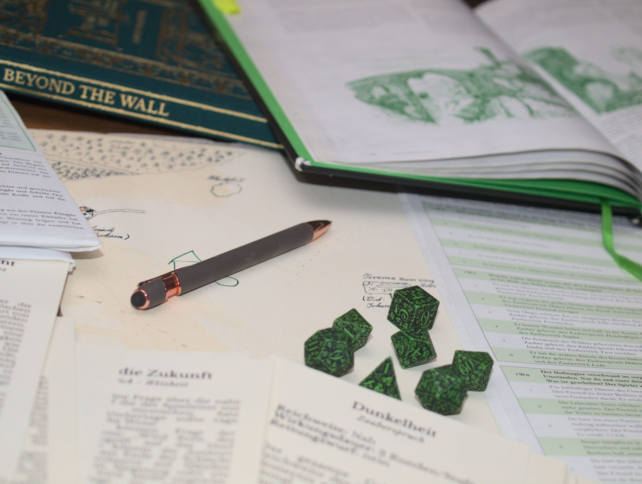 Nichts leichter als das! Denn zu genau diesem Zweck wurde das Pen&Paper oder auch Tischrollenspiel erdacht. Gemeinsam mit einer Gruppe anderer Wagemutiger nimmt man hierzu an einem Tisch Platz. Eine Spielleitung, die beschreibt was innerhalb des Spiels geschieht und als neutraler Schiedsrichter fungiert, beginnt mit Worten eine Welt zu zeichnen. Die Spieler und Spielerinnen beschreiben ihrerseits, was ihre Helden innerhalb der Spielewelt vorhaben. Richtig, vorhaben, denn bevor sie mit ihren heroischen Taten erfolgreich sind, hat das Schicksal auch noch ein Wort mitzureden. In diesem Falle in der Form fallender Würfel.