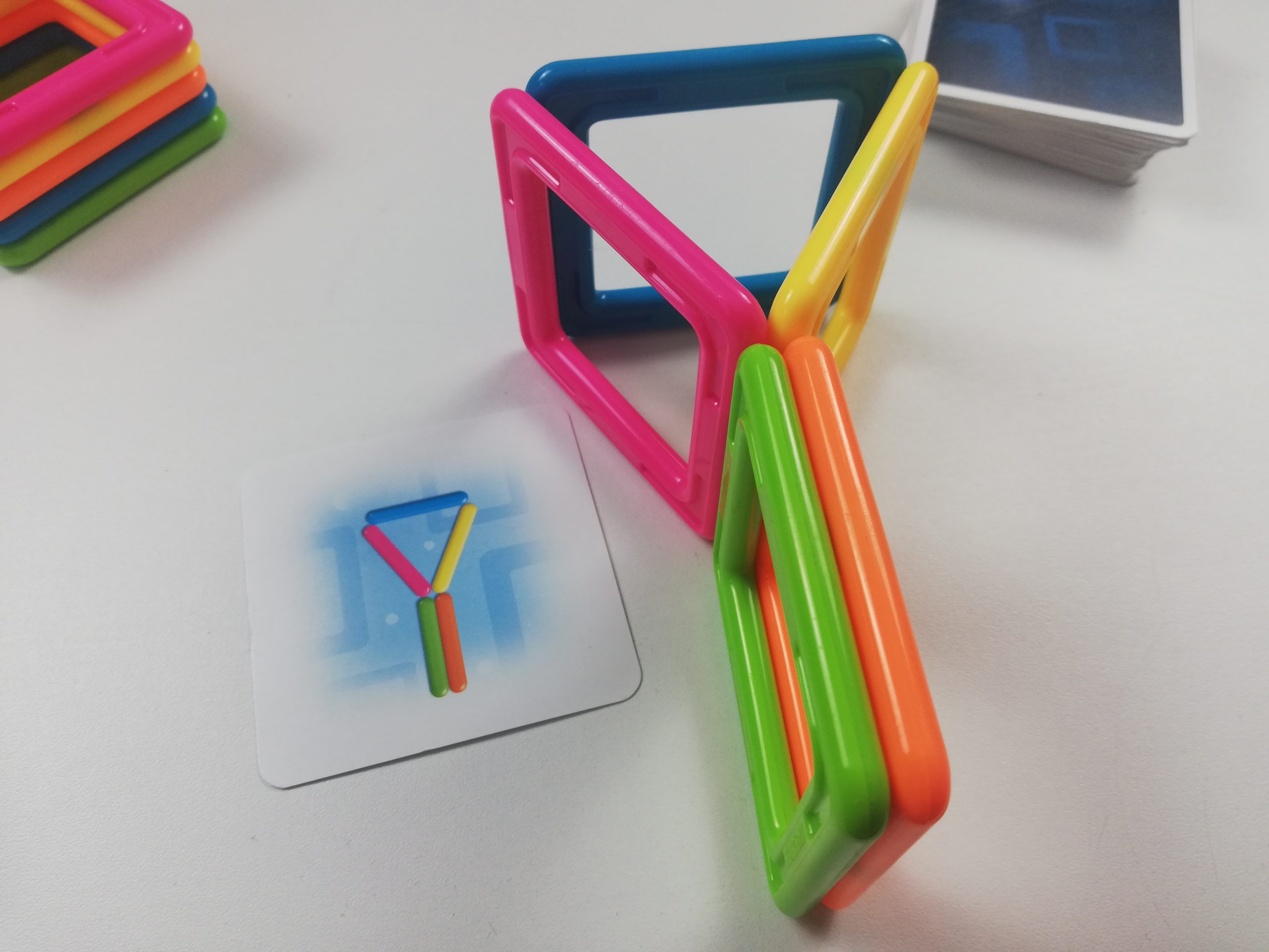 Und dann gibt es kein Halten mehr: hektisch versuchen nun alle, die auf der Karte abgebildete Form mit den eigenen Quadraten nachzubilden.