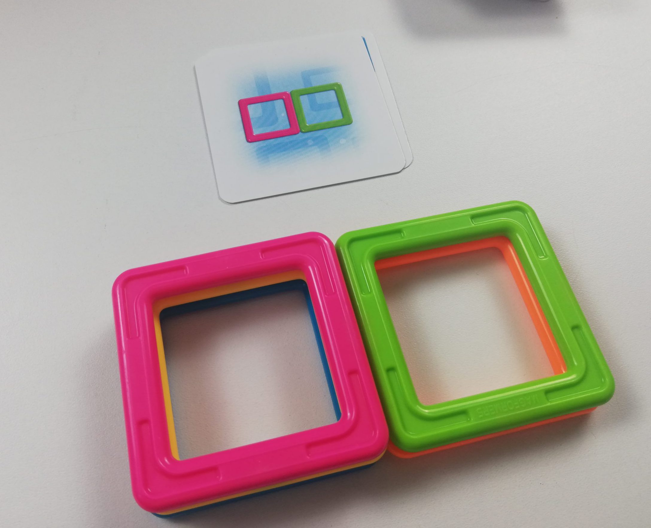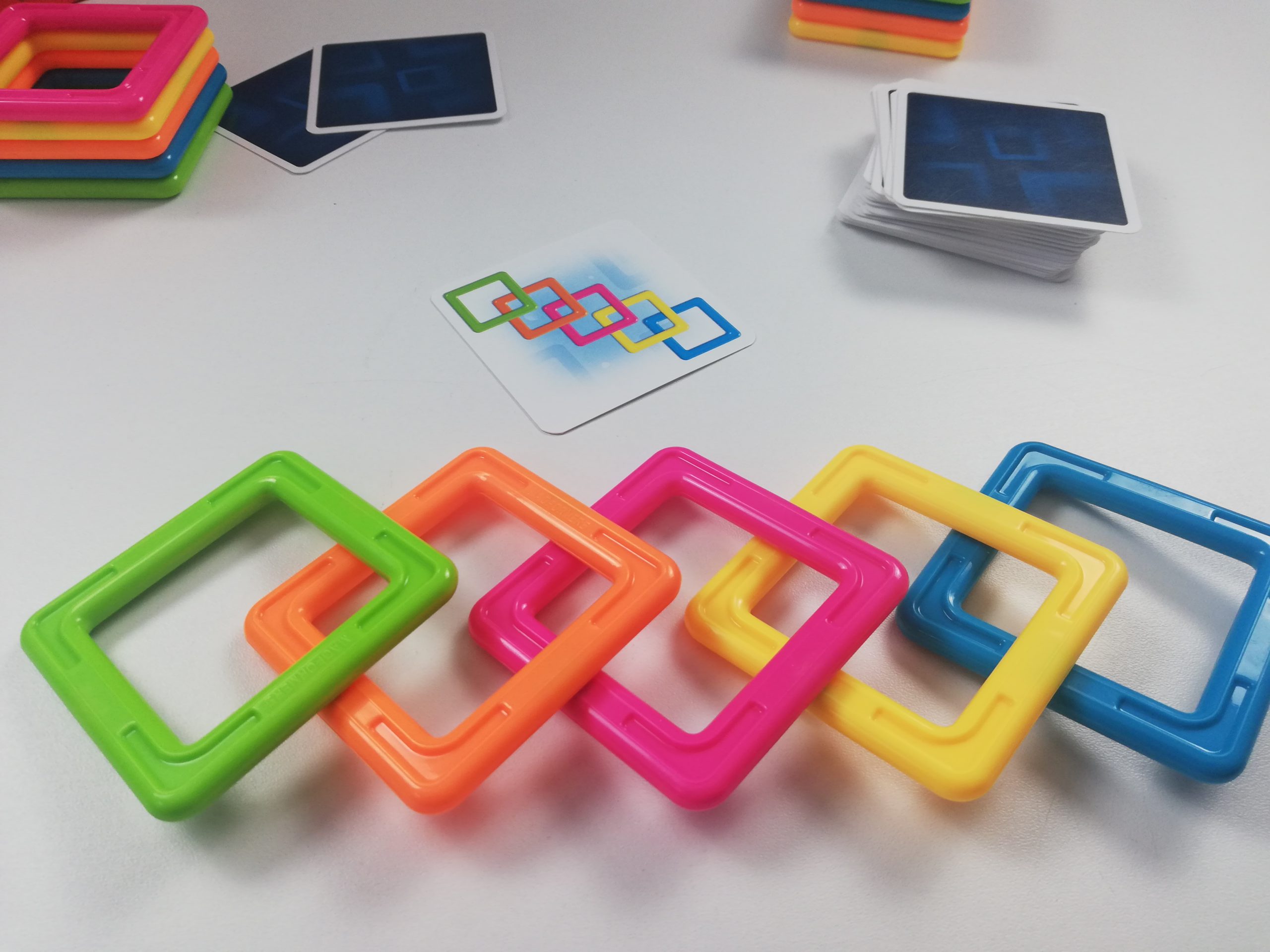 Das wird man sicher am Tisch hören, wenn Magnefix gespielt wird. Hektisch geht es zu, wenn versucht wird die fünf magnetischten Quadrate in die richtige Form zu bringen.