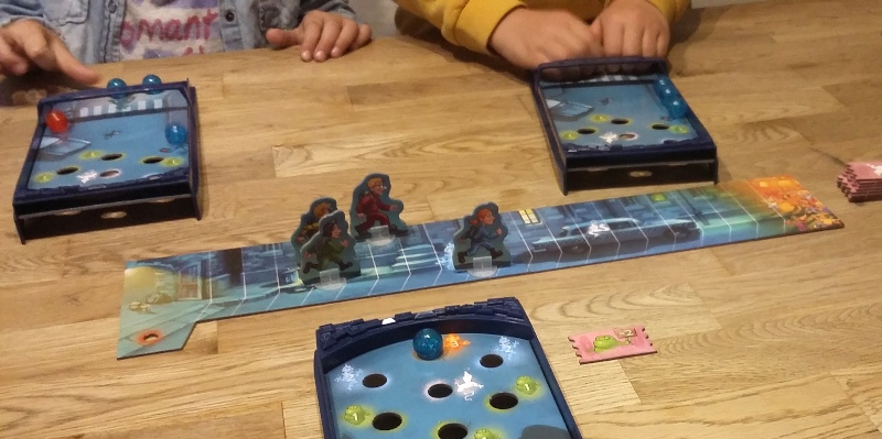 Geisterfalle wurde als Kinderspiel herausgebracht – ist aber definitiv nicht nur das! Geisterfalle ist ein richtig gutes Familienspiel, das sogar die Erwachsenen bei bester Laune hält. Selten hält man ein Spiel in den Händen, wo man wunderbar mit kleinen Kindern bis hin zu Erwachsenen zusammen spielen kann und jeder dabei richtig viel Spaß hat. Mit Geisterfalle ist dies definitiv gelungen. Wir finden hier ein witziges Aktionsspiel vor, das einfach nur gut unterhalten will. Das Schubsen der Kugeln in die Löcher ist dabei gar nicht so einfach wie es aussieht und dann doch wieder nicht so schwer, dass die jüngsten Kinder dabei den Spaß verlieren würden. Das angegebene Alter würden wir so allerdings nicht unterstreichen: Bei Geisterfalle können problemlos Kinder ab 4 Jahren mitspielen. Denn hier muss man weder strategisch denken, noch sich lange konzentrieren.
