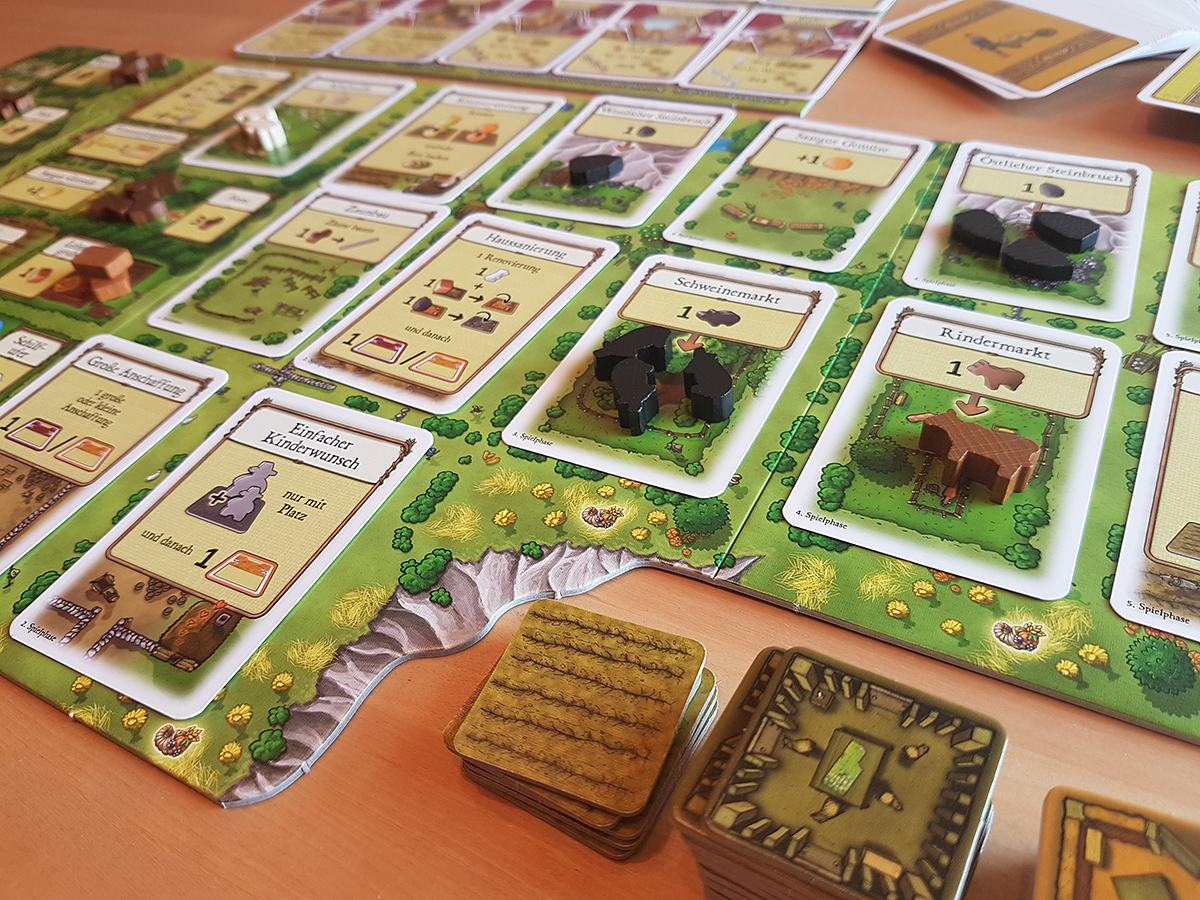 Agricola ist für 1 bis 6 Spieler (mit Erweiterung). Es skaliert perfekt mit, je mehr Spieler im Spiel, desto mehr Aktionsfelder und Karten sind vorhanden. Gerade zu zweit oder zu dritt spielt es sich perfekt, je mehr Spieler am Tisch sitzen, desto länger wird die Wartezeit, die bei sechs Spielern schon mal schmerzhaft wird. Übrigens auch Solo macht es wirklich Spaß, seinem eigenen Rekord nachzujagen und Spiel für Spiel besser zu werden.