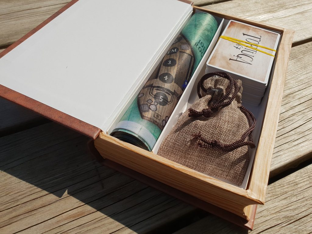 Gelobt werden sollte übrigens auch das Material. Die Verpackung von Tortuga stellt ein Buch da, ist sehr stabil und eine absolute Augenweide. Aber auch die mitgelieferte Spielmatte, das Säckchen und die Schatzkistchen sind wirklich toll. Die Grafik von Karten und Spielmatte sind spieleinladend und passen ideal zum Thema. Man hat richtig Lust, das Spiel zu erleben.