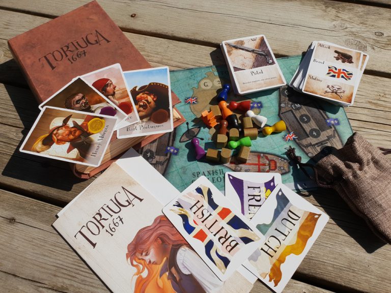 Tortuga 1667 ist ein Spiel von Travis Hancock, das bei Facade Games erschienen ist und durch Kickstarter in den Handel kam. In Deutschland wird es von Board Game Circus vertrieben. Es ist ein Spiel für 2-9 Personen und ab 13 Jahren geeignet. Derzeit ist Tortuga 1667 nur auf Englisch erhältlich, allerdings können die deutschen Regeln im Internet runter geladen werden.