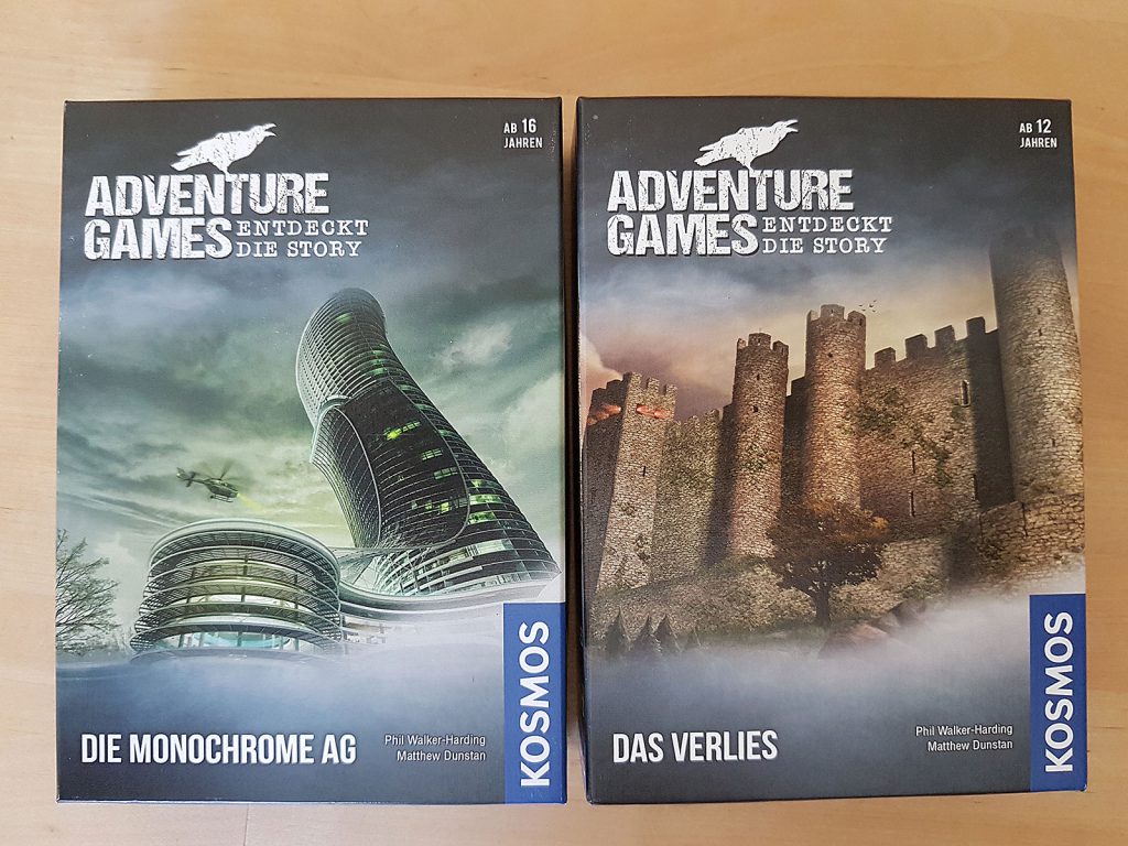 Meiner Meinung nach sind die Adventure Games eine wirklich unterhaltsame Sache. Die Kombination Story (wie in einem Buch) und Spiel ist perfekt gelöst. Die beiden gespielten Fälle („Das Verlies“ und „Die Monochrome AG“) konnten die kooperativen Spieler begeistern, auch solo sind sie tolle Unterhaltung – und mit ähnlicher Spannung gern auch ein zweites Mal oder öfter zu spielen. Bis man jeden Winkel der Geschichte durchstöbert hat (und es lohnt sich), muss man es sogar noch öfter spielen. Wer kooperative Spiele nicht mag, ist hier natürlich falsch am Platz. Wer aber gern mal einen spannenden Krimi liest, aber auch am Rätsellösen Freude hat, der hat hier eine optimale Kombination. Bei mir haben die Adventure Games einen besonderen Platz im Regal, auch wenn ich sie schon gespielt und gelöst habe. Aber ich kann mir gut vorstellen, sie bei Gelegenheit wieder herauszuholen und wieder eine spannende Geschichte zu erleben und mitzugestalten.