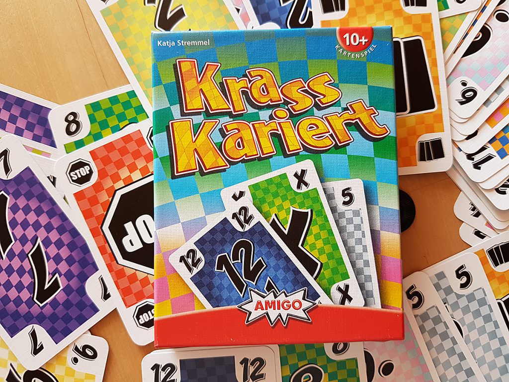 „Krass Kariert“ von AMIGO ist ein sehr einfaches Kartenspiel für die ganze Familie. Hat man mal die Werte der einzelnen Kombinationen verstanden, spielt es sich flott und jeder kann mitfiebern, wie ein anderer verliert. Das ist nicht so schlimm, denn man spielt nicht gegen einen Spieler, um ihn gemeinsam aus dem Rennen zu werfen, das geht nicht. Also bestimmt vor allem Väterchen Zufall, ob ich gute Karten und vor allem in der richtigen Reihenfolge auf der Hand habe. Die Reihenfolge der Karten kann man nämlich nicht verändern. Ein bisschen Taktieren kann man durch die Reservekarten, denn die darf man beliebig einschieben und damit vielleicht gute Kombinationen erhalten. Aber man verliert nicht nur den Zug, sondern hat auch eine Karte mehr auf der Hand.