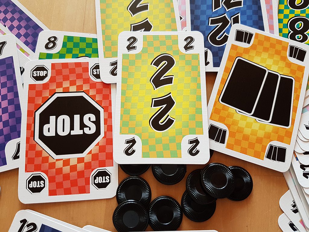 Ein paar zusätzliche Karten versüßen das Spielerleben, mit einer Stopp-Karte beende ich die Runde und alle nach mir kommen nicht mehr dran. Mit einer Nachziehkarte muss der Spieler, der in dieser Runde die höchste Kombination ausgespielt hat, drei Karten vom Stapel nachziehen. Und eine X-Karte dient als Joker.