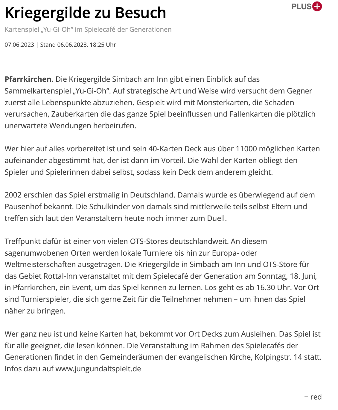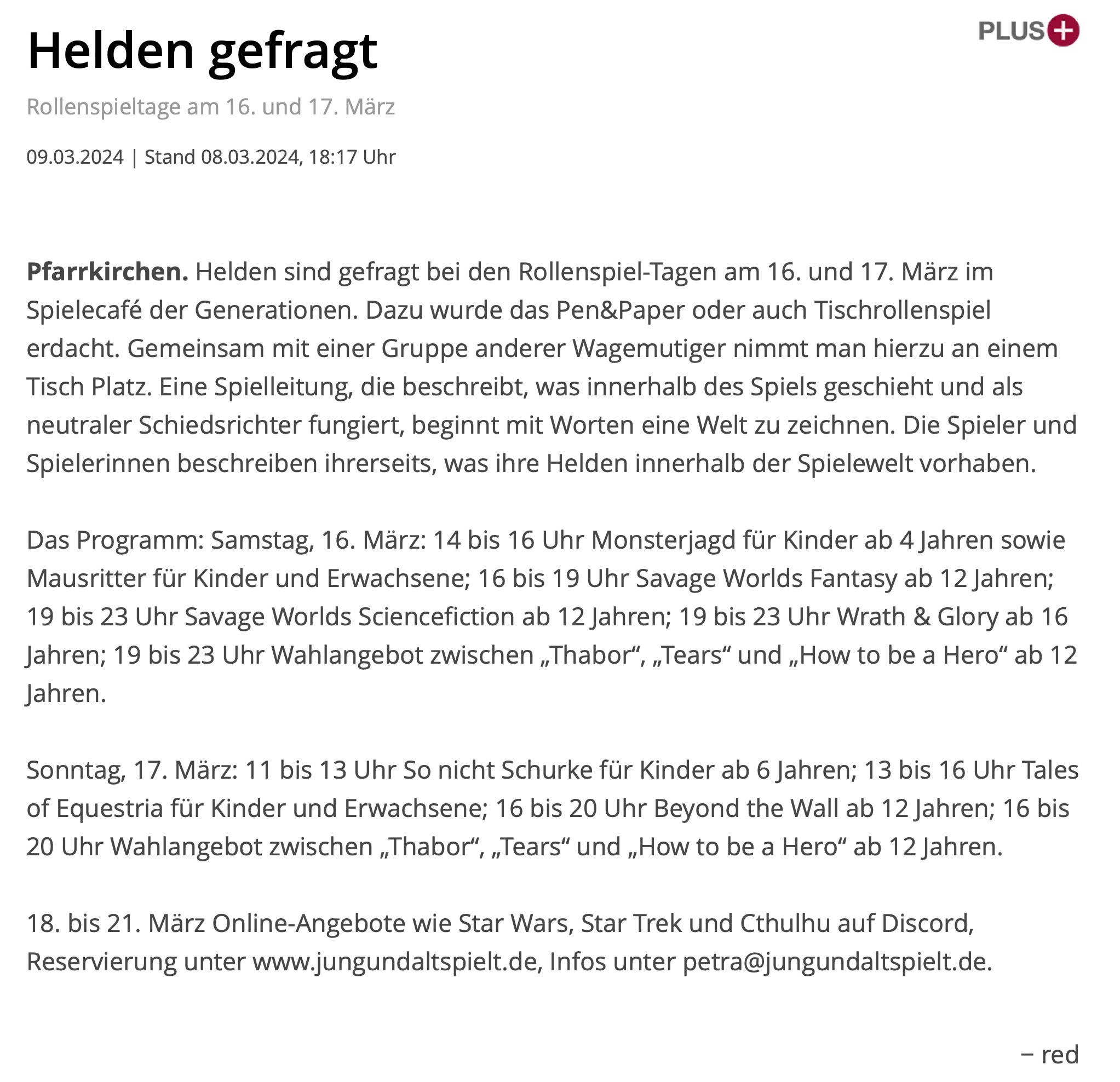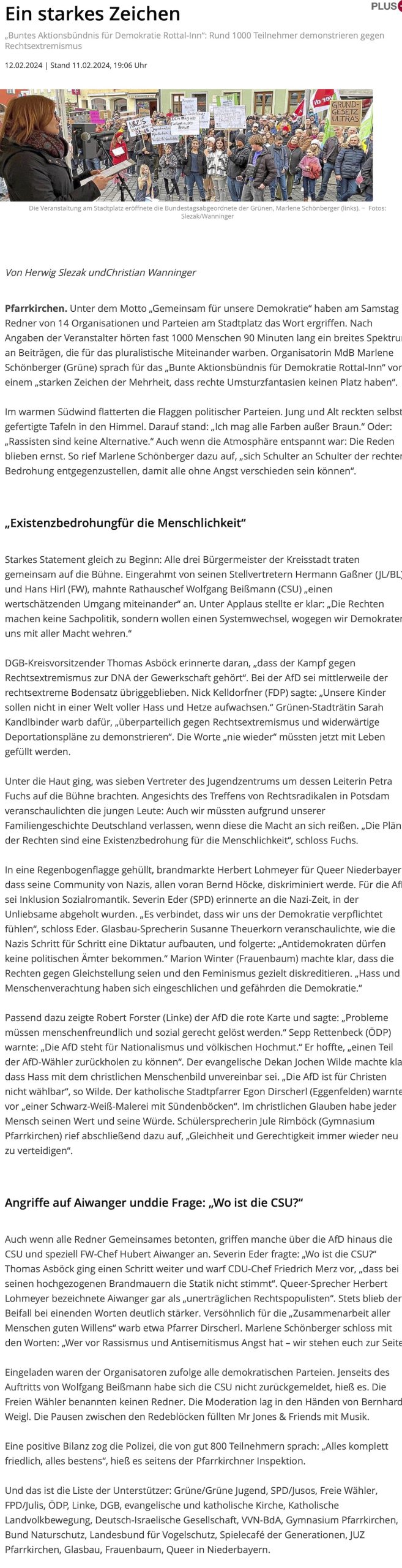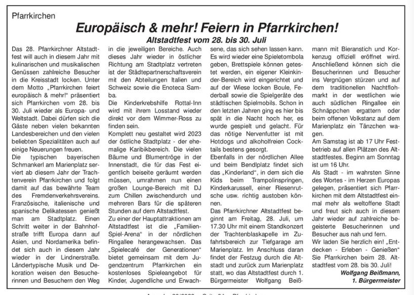 in der Passauer Neue Presse, Lokalteil Pfarrkirchen