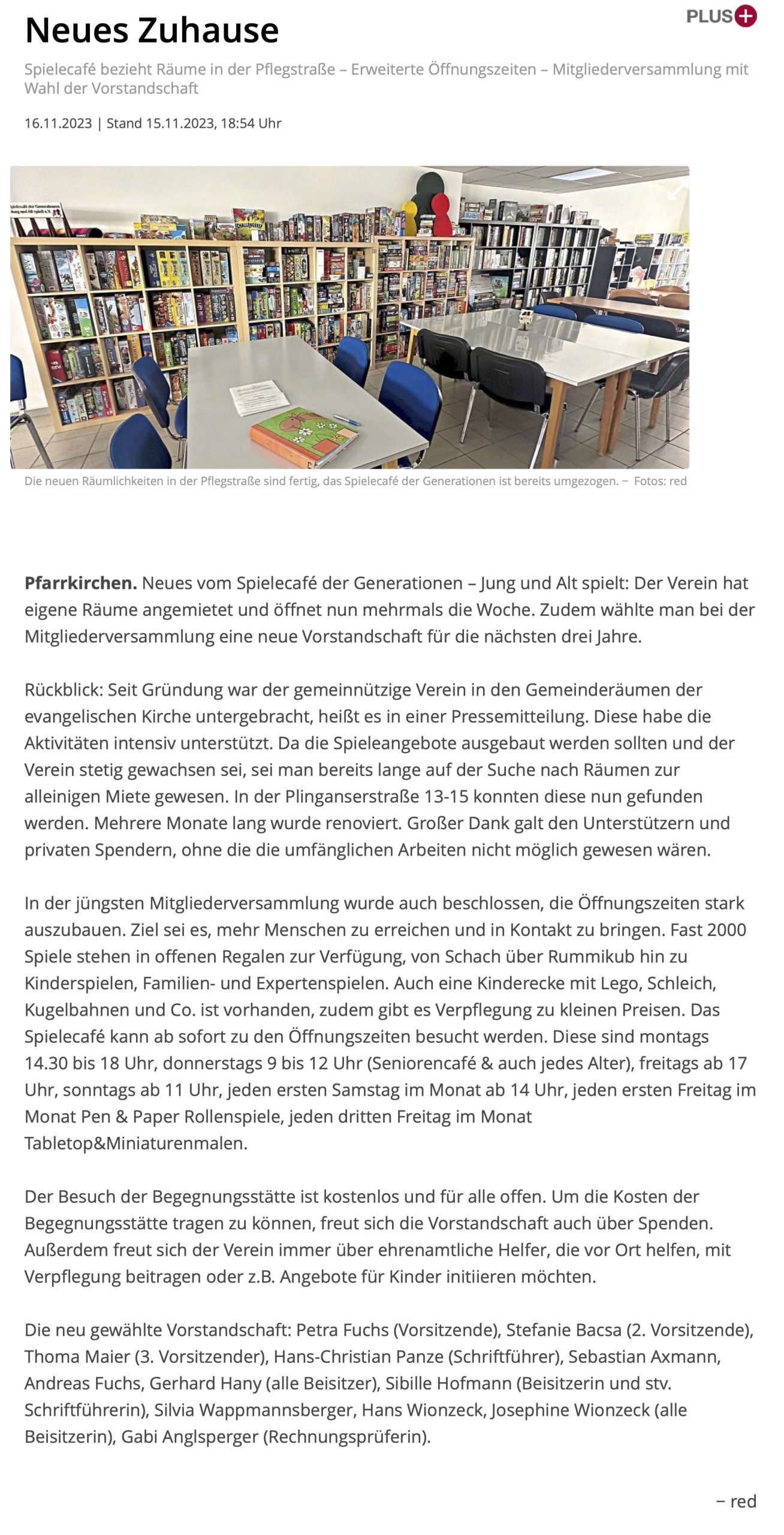 - Tiroler Tageszeitung: 5 Fragen an David Haas vom Brettspielverein: „Senioren mit Spielen zum Lachen bringen“ ( Wie erkennt man Gesellschaftsspiele, die sich eignen? In Deutschland vergibt das „Spielecafé der Generationen“ ein Gütesiegel für Spiele, die wirklich für jedes Alter geeignet sind)