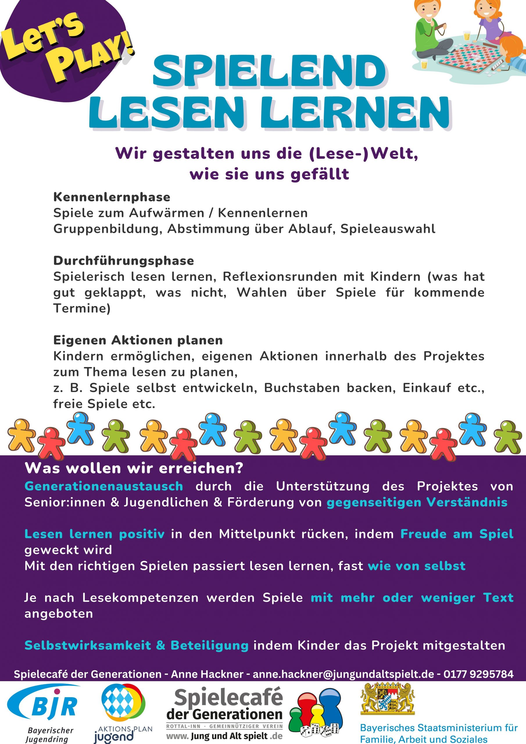 Bereits seit letztem Herbst, führt das Spielecafé der Generationen das Projekt „spielend lesen lernen“ durch. Nicht nur in Schule und Hort ist der Verein mit Anne Hackner (Erzieherin) und Ehrenamtlichen tätig, sondern auch in den Ferien.