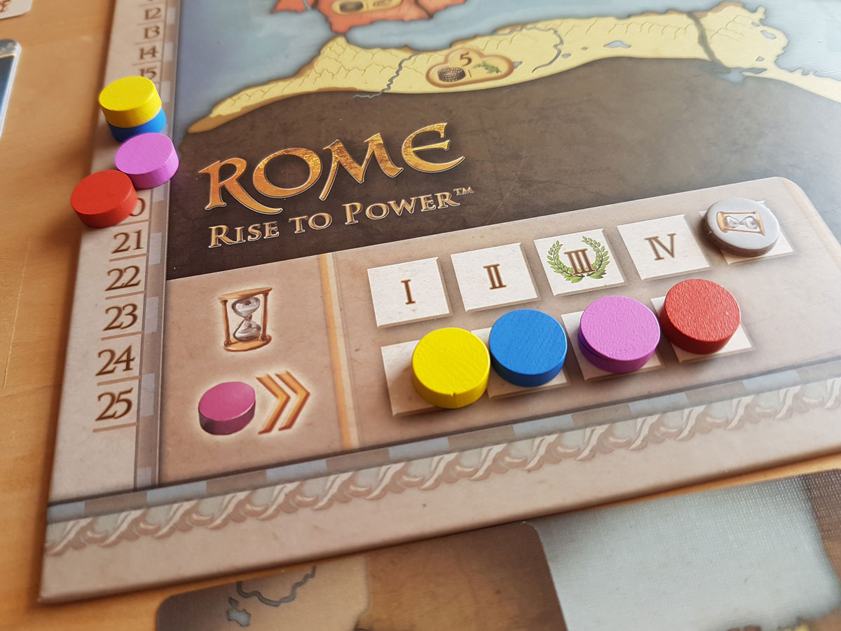 Chef sein kann schon Spaß machen, vor allem als Chef des römischen Reiches. Also Cäsar. Und um nichts Geringeres geht es in „Rom – Rise to Power“. Über fünf Runden hinweg versuchen wir Legionen aufzustellen und Provinzen an uns zu binden und deren Reichtümer in unsere Taschen zu übertragen. Wir versuchen, wichtige Ämter zu besetzen, die uns immense Vorteile verschaffen. Aber wir denken auch an das Volk, das uns wohlgesonnen sein soll. Also versuchen wir, beeindruckende Vorstellungen in der Arena zu veranstalten.