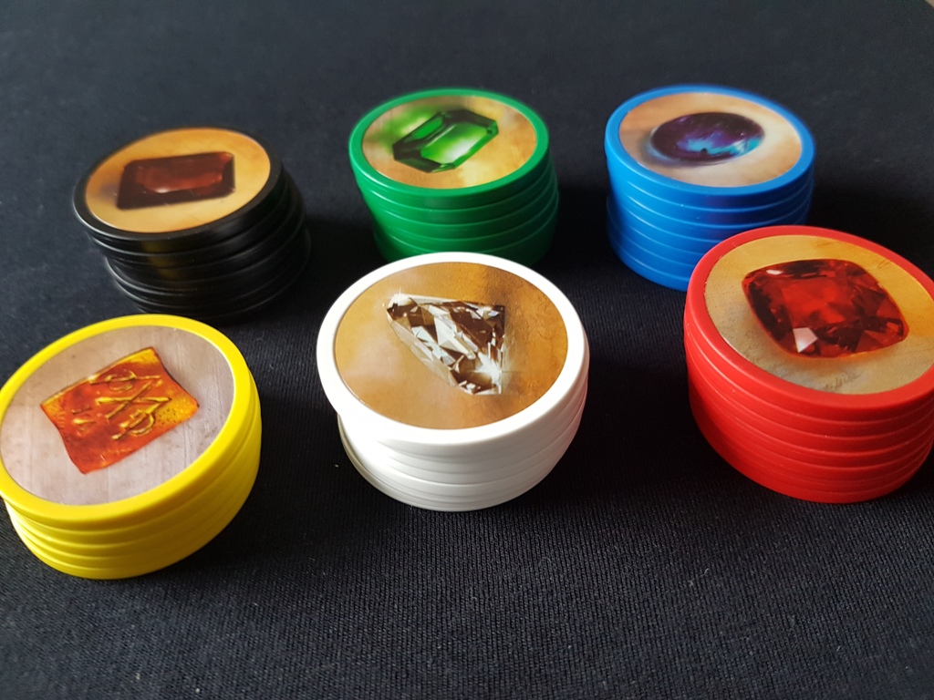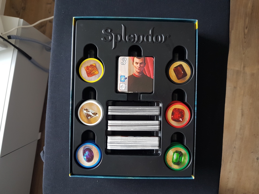 Das Material von Splendor kann als vorbildlich für das Generationenspiel-Siegel bezeichnet werden. Die Spielechips sind sehr groß und stabil. Sie lassen sich einfach vom Tisch aufnehmen und liegen angenehm in der Hand. Auch die Karten sind hochwertig produziert. Auf- und Abbau des Spiels werden durch eine Sortiereinlage für das Material in der Spieleschachtel ideal unterstützt. Der Spielaufbau ist übersichtlich strukturiert, so dass sich SpielerInnen jeden Alters problemlos im Spiel zurecht finden.