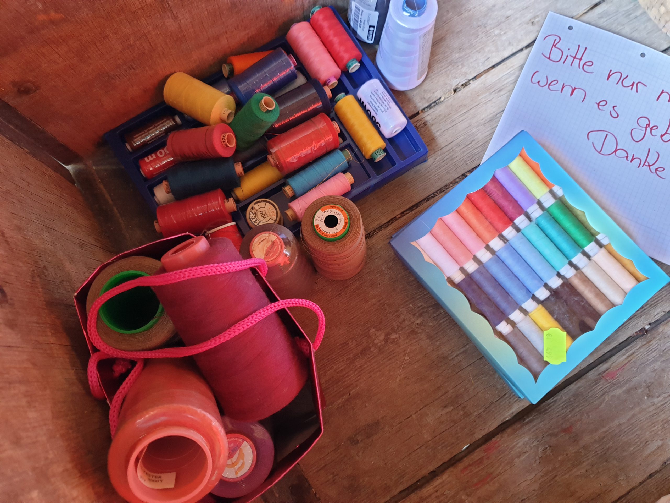 Wir machen weiter, so wie wir angefangen haben: Wir sammeln Materialspenden, verteilen es an interessierte NäherInnen und nehmen die fertig genähten Masken wieder zurück.