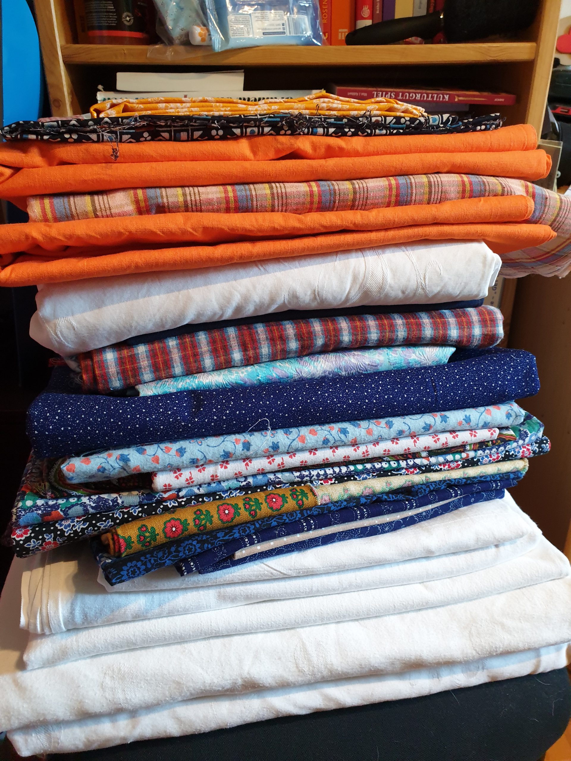 Im übrigen freuen wir uns, wenn wir die Stoffe gewaschen bekommen (60 Grad ohne Waschmittel). So gehen die Stoffe nach dem Nähen nicht ein, wenn die Einrichtungen die fertigen Masken nochmal waschen.