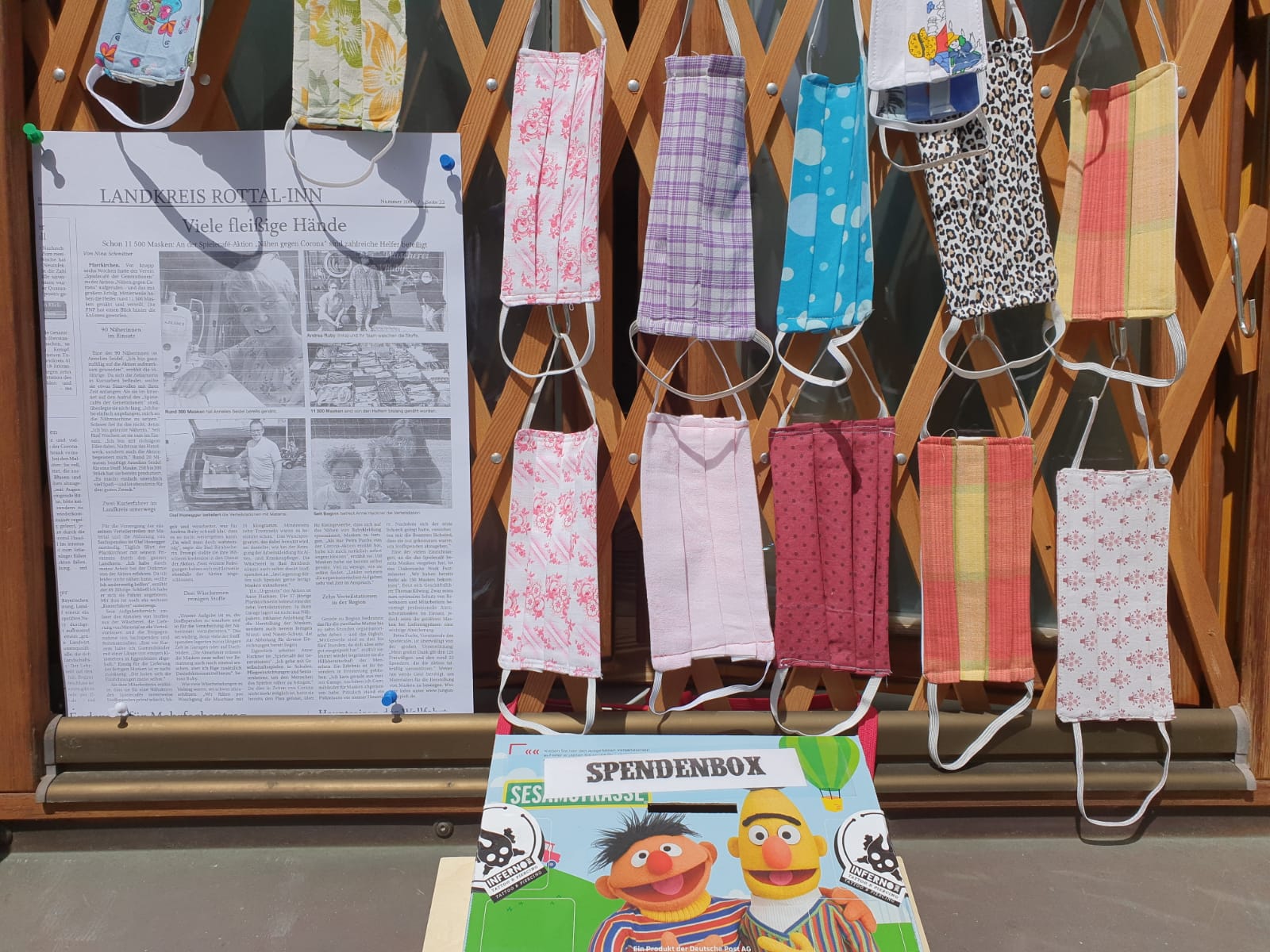 – Masken wieder über die Läden gegen Spenden verteilen