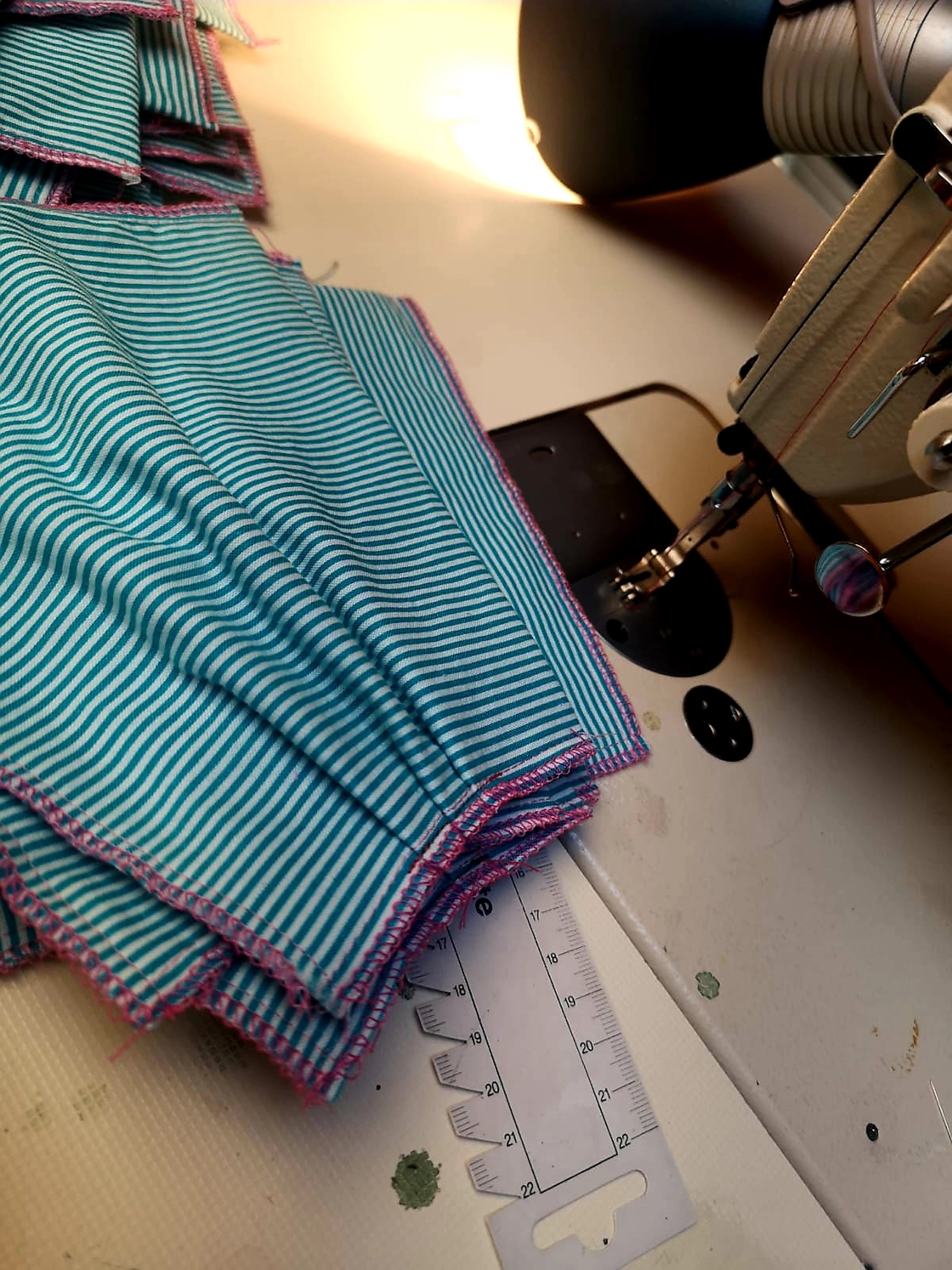Dieses große und hoffentlich noch weiter wachsende Team ist aber auch dringend notwendig. Der Bedarf an Masken wächst täglich. Mittlerweile wurden über 1500 Mundmasken bei uns angefragt. Das bringt uns in so kurzer Zeit an unsere Grenzen. Aus diesem Grund verschicken wir aktuell keine Masken sondern bitten alle, die einen Bedarf angemeldet haben, die Masken selbst bei uns abzuholen. Natürlich finden wir auch Lösungen, wenn dies jemandem überhaupt nicht möglich ist!