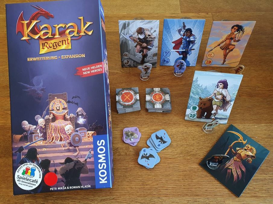 Das Grundspiel von „Karak“ habe ich bereits hier besprochen. Auf die Grundregeln dieses Dungeon-Crawlers für Kinder (und erwachsene Einsteiger:innen) gehe ich deshalb nicht ein, sondern wir schauen mal, was die Erweiterung „Regent“ an neuem Material und neuen Regeln bietet.