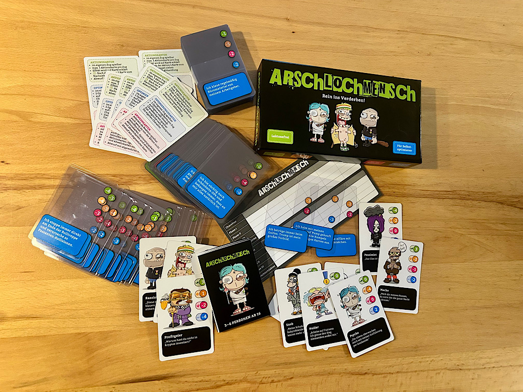 Arschlochmensch | Gruppenspiel | ab 16 Jahren | 3 bis 6 Spielende | Angela Vögtli und Jerome Müller | Kampfhummel Spiele