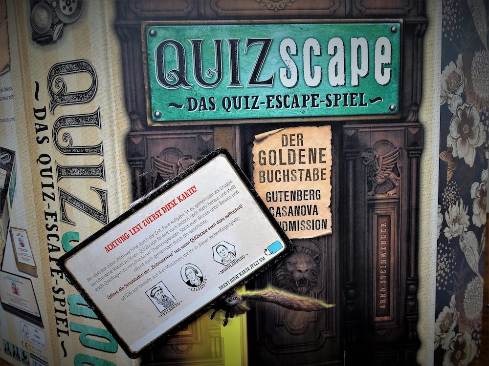 Quizscape: Der Goldene Buchstabe | kooperatives Rätselspiel | ab 14 Jahren | 2 bis 5 Spielende | Arno Steinwender | moses.