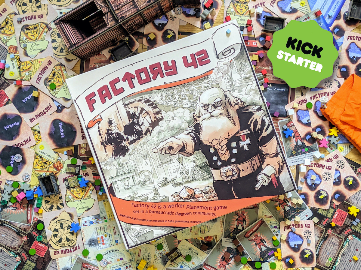 Der finnische Verlag Dragon Dawn Productions bleibt seiner mit Spielen wie Perdition’s Mouth, Dwarf oder Zanziar etablierten Fantasy-Welt Zanziar treu, und veröffentlicht am 10. Oktober um 20:20 Uhr (MEZ) sein nächstes Spiel aus diesem Universum auf der Crowdfunding-Plattform Kickstarter. In dem semi-kooperativen Kennerspiel Factory 42 verschlägt es 2 bis 4 SpielerInnen ab 12 Jahren in eben diese Welt, um als Zwergen-Vorarbeiter um wertvolle Ressourcen zu ringen. Wie sich das ganze spielt, erfahrt ihr in der nachfolgenden Vorschau.