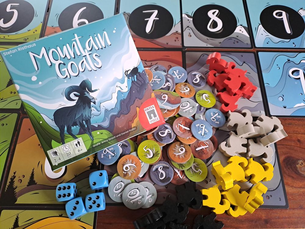 Mountain Goats ist ein Familienspiel von Stefan Risthaus und bei Ostia Spiele erschienen. Es ist für 2-4 Spielende geeignet und kann ab 6 Jahren gespielt werden.