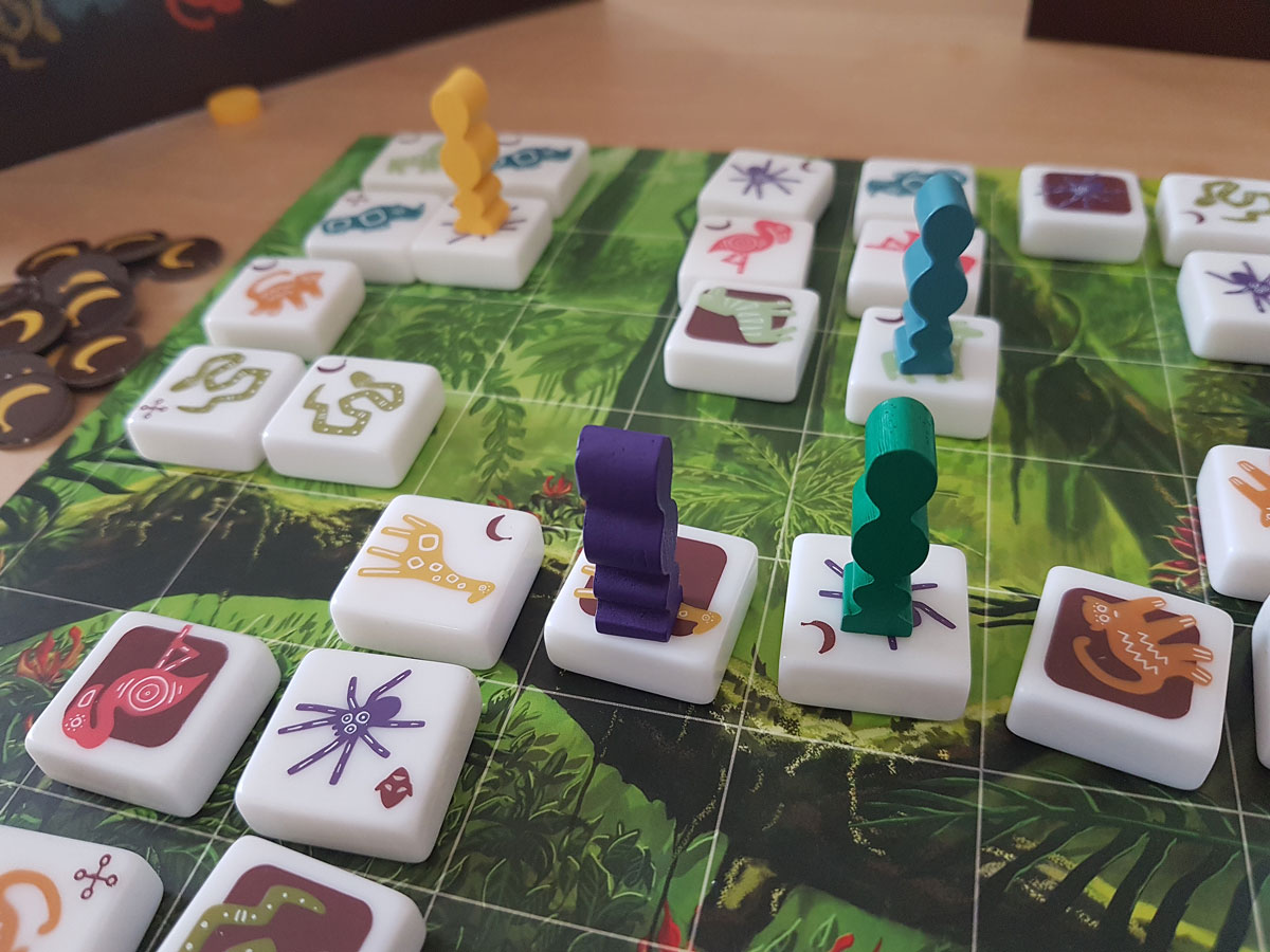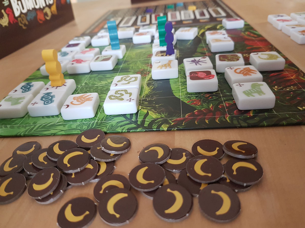 Nach seinem Zug nimmt man den Stein vom Feld, auf dem die Figur zuvor gestanden hat und so sammelt man im Laufe mehrerer Runden Tiersteine ein. Manche davon erlauben bestimmte weitere Aktionen wie „Banane nehmen“ oder Wertungstafel manipulieren.