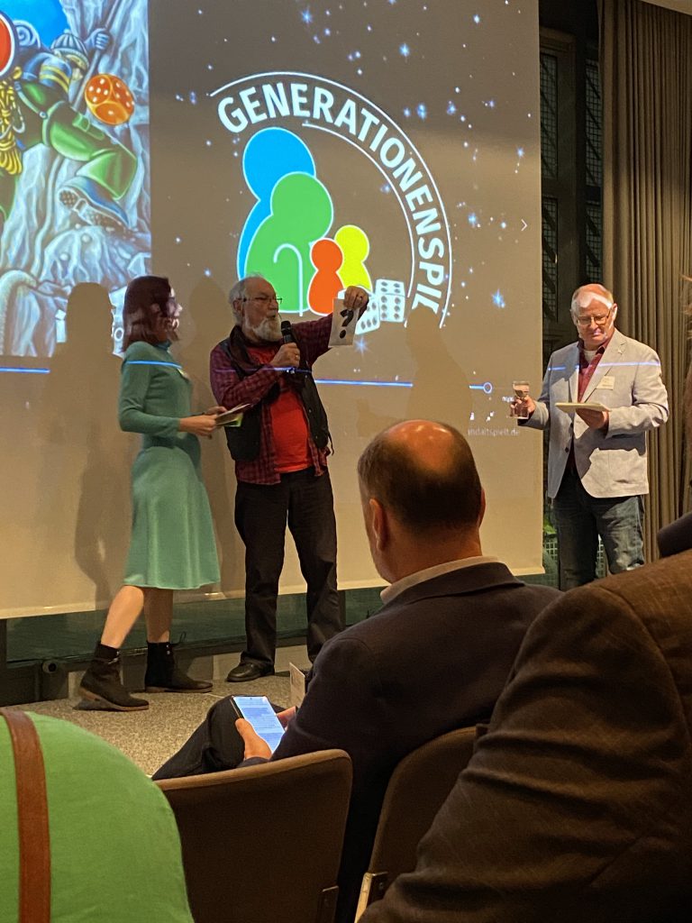 Ein wesentlicher Unterstützer des Vereins und speziell des Siegels, Hermann Hutter, Vorsitzender von Spieleverlage e.V. schloss sich an und betonte die gesellschaftliche Wichtigkeit von generationenübergreifendem Spielen.