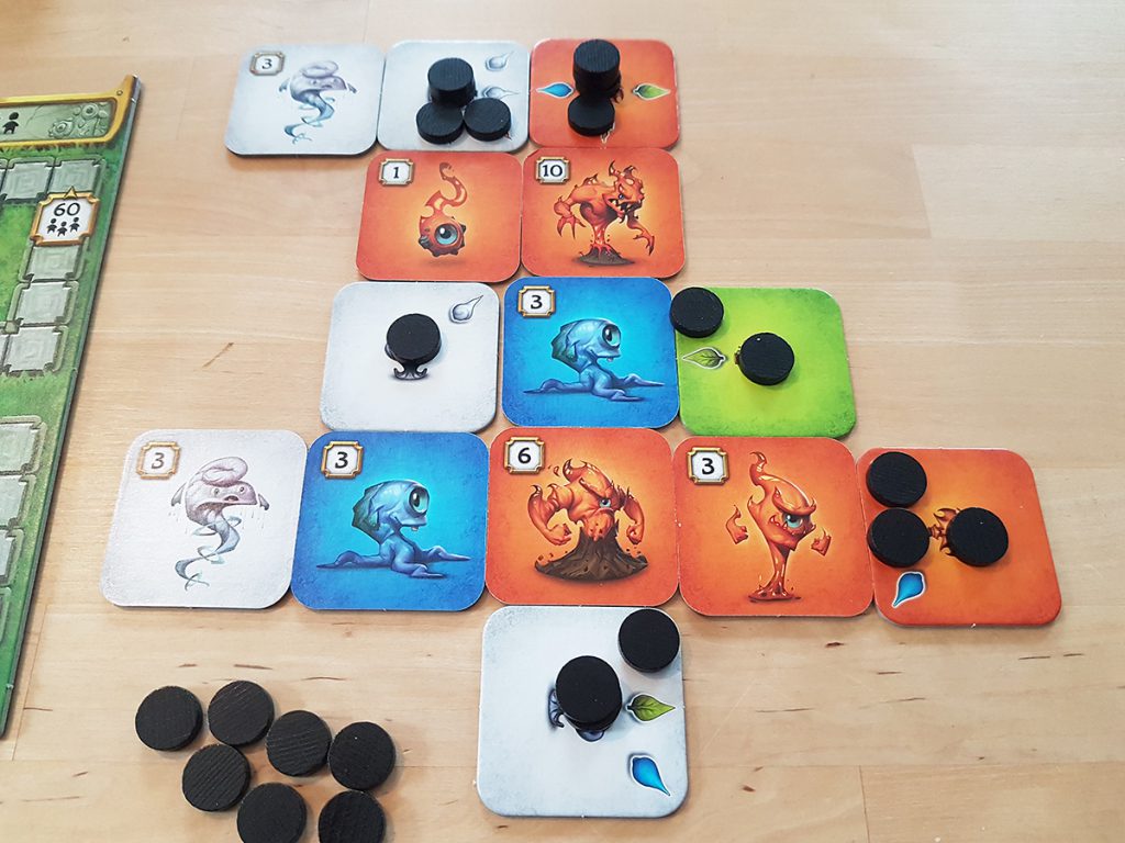 Und wem das Spiel nicht fordernd genug ist, dem empfehle ich eben jenes „Nova Luna“, kniffliger und mit mehr Spieltiefe, vom Prinzip aber gleich – nur ohne diese süßen knuffigen Monsterchen.
