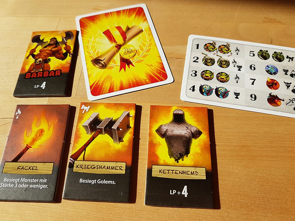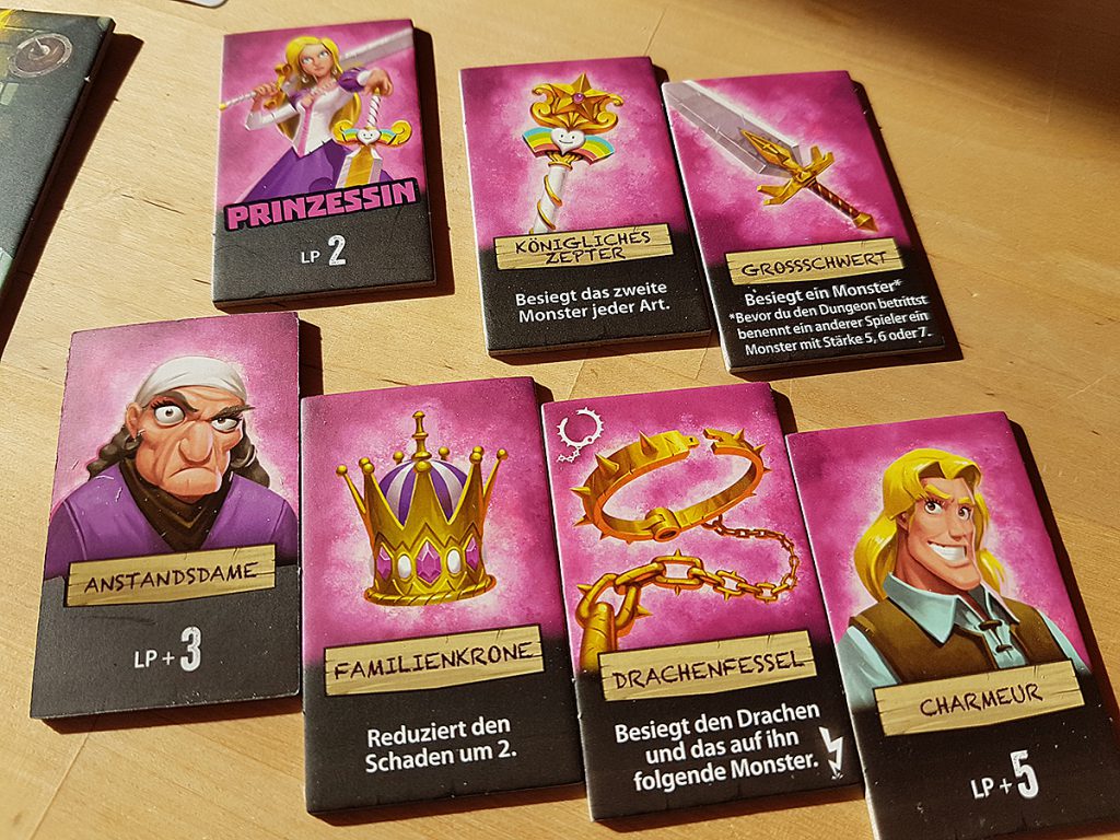 Mit vier verschiedenen Helden und jeweils unterschiedlicher Ausrüstung im Spiel bietet es eine schöne Abwechslung. Das Spiel lebt von dem Taktieren der Spieler, wie leicht sie es dem Helden machen, um ihn dann selbst ins Verlies führen zu können oder wie schwer sie es ihm machen, um dann hinterher ja nicht den Helden spielen zu müssen. Feiglinge werden belohnt, weil sie kein Risiko eingehen, früher ober später müssen sie aber Farbe bekennen und dann kann der Mutige längst schon auf dem Weg zum zweiten Erfolg sein.