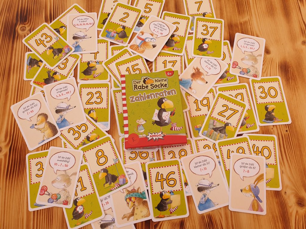 So gelungen auch bei zwei Spielen von Amigo, die als „Der kleine Rabe Socke Spiele“ herausgekommen sind.
