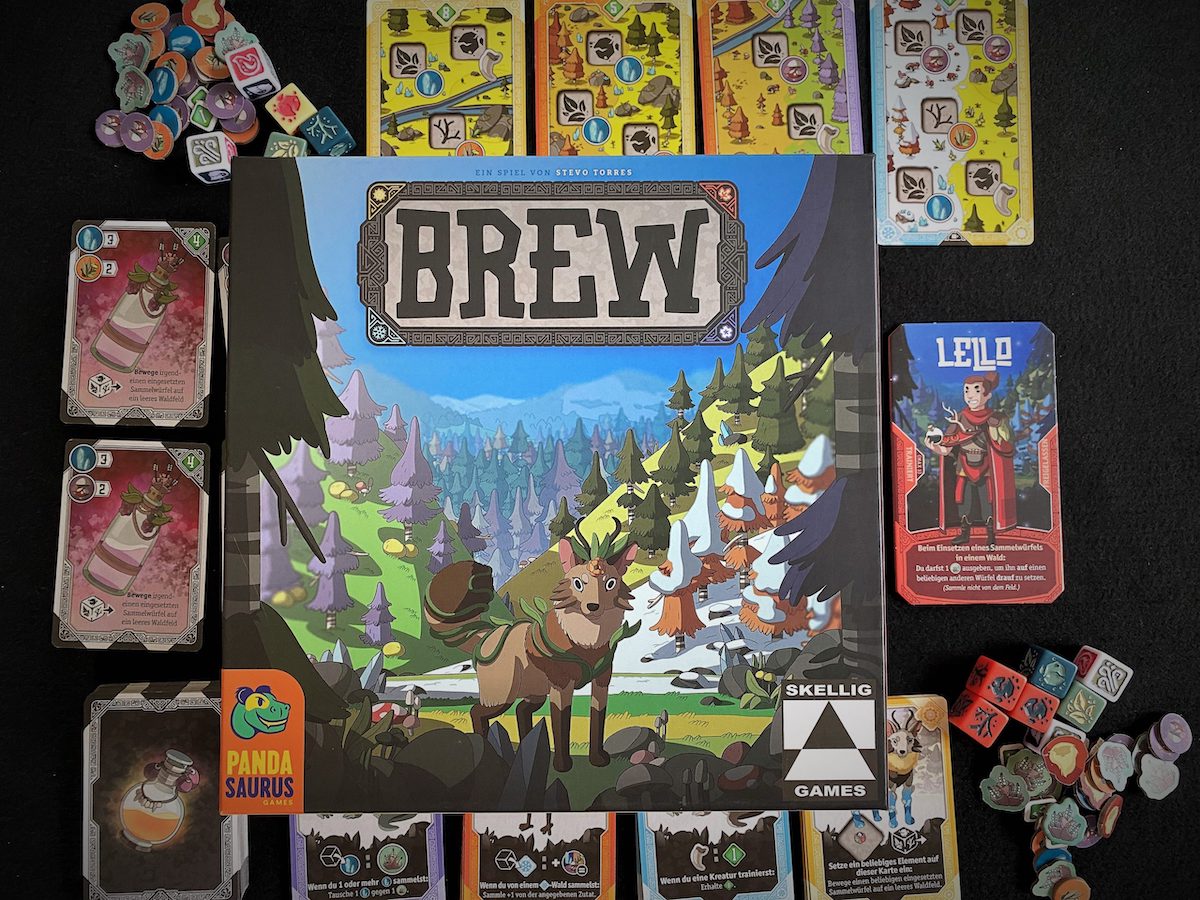 „Brew“ ist mein Geheimtipp für euch, wenn ihr Kennerspiel mit simplen Regeln, einem hohen Grad an Interaktion am Tisch und einem außergewöhnlichen optischen Stil ausprobieren möchtet. Am liebsten spiele ich es zu zweit, denn dann entwickelt es sich zu einem harten Duell, bei dem sich die Spielenden nichts gönnen. Ein potenter Trank zur richtigen Zeit oder ein gezielt gesetzter Feuerwürfel lassen die Blicke der Person gegenüber finster werden.