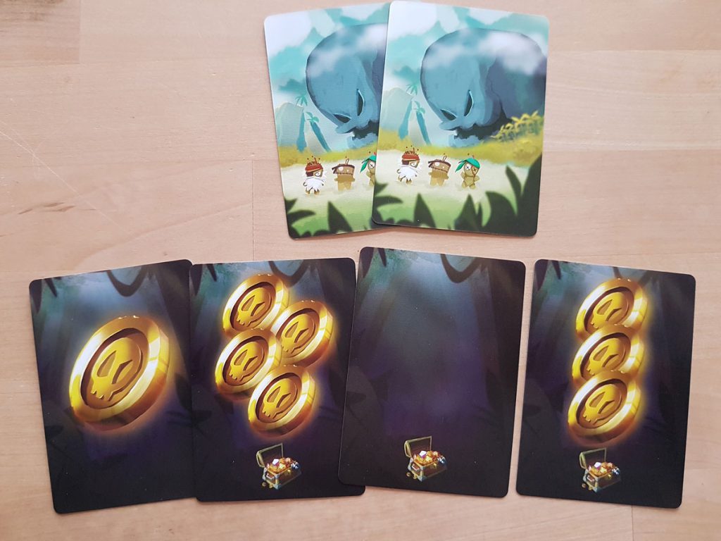 Dann beginnt eine Runde. Und das bedeutet, jeder Spieler wählt eine seiner Handkarten und legt sie verdeckt auf den Tisch. Haben das alle, werden die Karten umgedreht und in aufsteigender Folge abgearbeitet. Jede Karte stellt einen Charakter der Schiffscrew dar und hat eine Anweisung auf der Karte. Diese wird befolgt. Wenn alle Karten abgearbeitet sind, nehmen die Spieler die Karte vor sich wieder zurück, das muss nicht die gleiche sein, die ausgespielt wurde. Und schon beginnt die zweite Runde. Das geht solange, bis einer der Spieler sieben Schatzkarten angesammelt hat. Gewinner ist schießlich der Spieler, der auf seinen Schatzkarten die meisten Münzen hat.