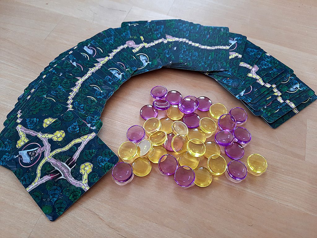 Denn man verliert leicht den Überblick. Die Grafik ist thematisch stimmig, aber auch nicht sonderlich übersichtlich. Je größer die Auslage wird, desto verzweifelter sucht man immer wieder die gleichen Wege ab, ob man nicht was übersehen hat. Das ist mühsam. Etwas abstraktere Grafik und es wäre ein schönes kleines Legeduell geworden. So aber ist es nur ein Spiel wie es sie schon oft gegeben hat und dann in unübersichtlich.
